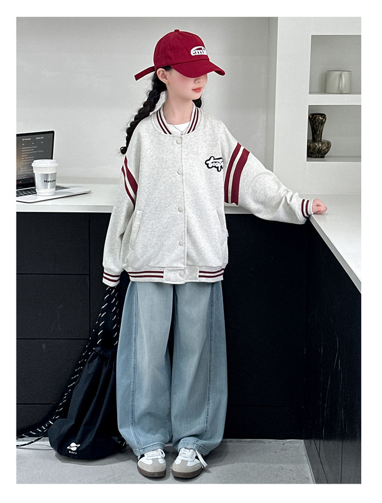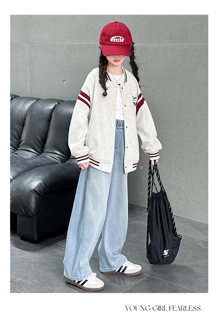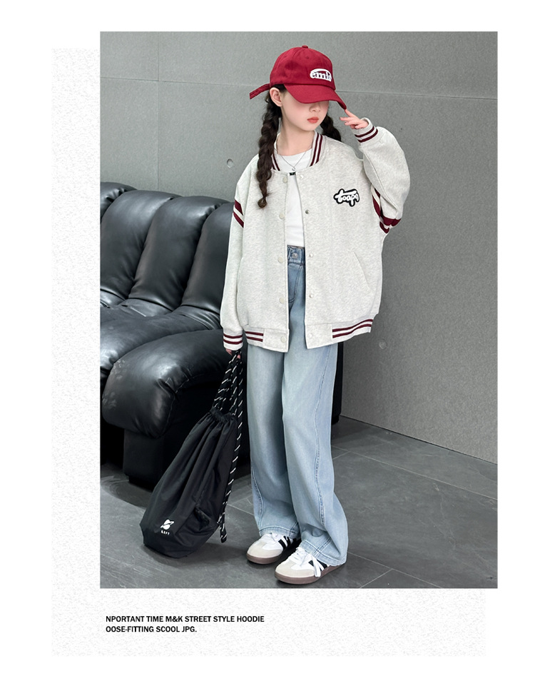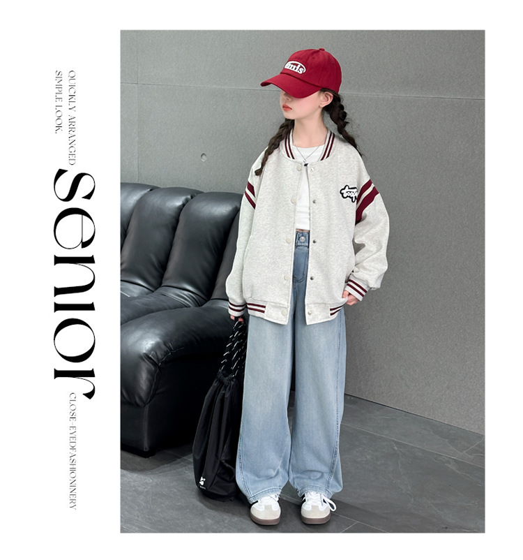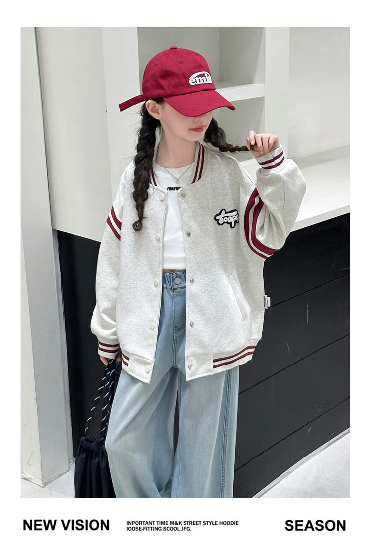 소녀 봄 코트 2025 새로운 어린이 서양식 대형 어린이 자켓 봄과 가을 유행 인터넷 축하 야구 세트 탑