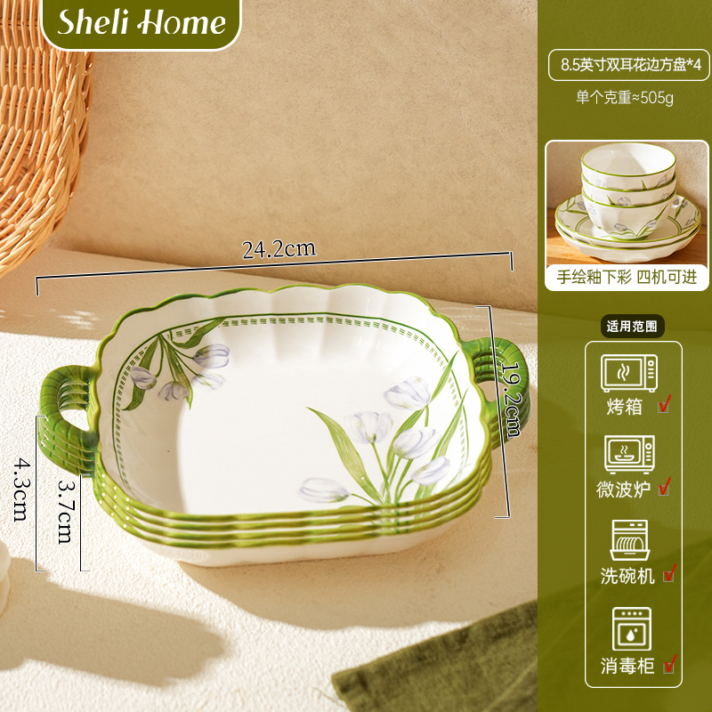 • 8.5inch 이중 귀 레이스 사각 플레이트*4