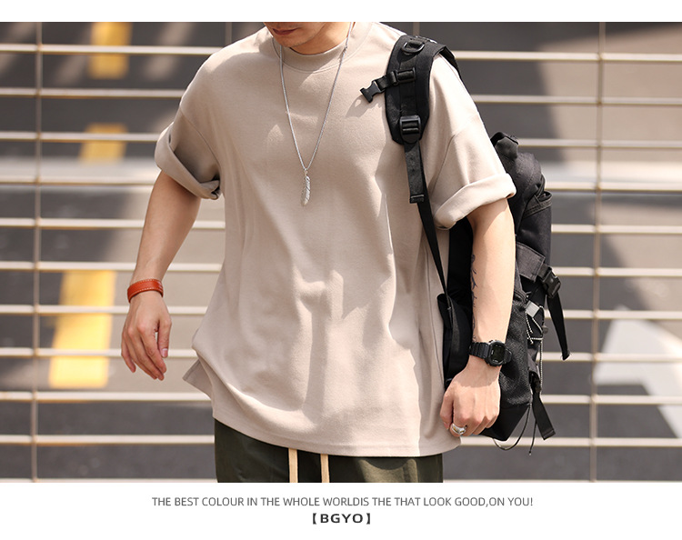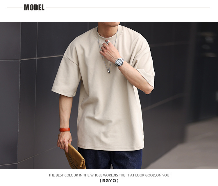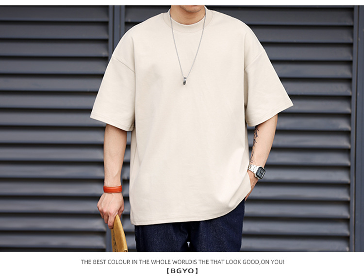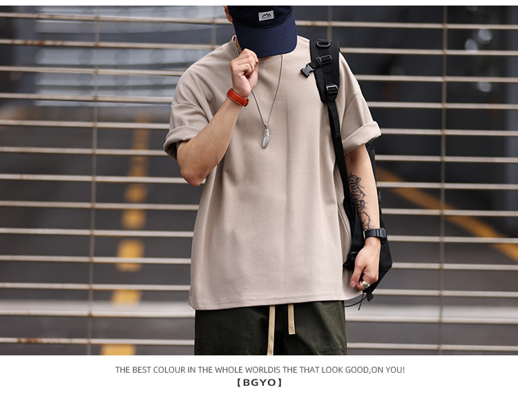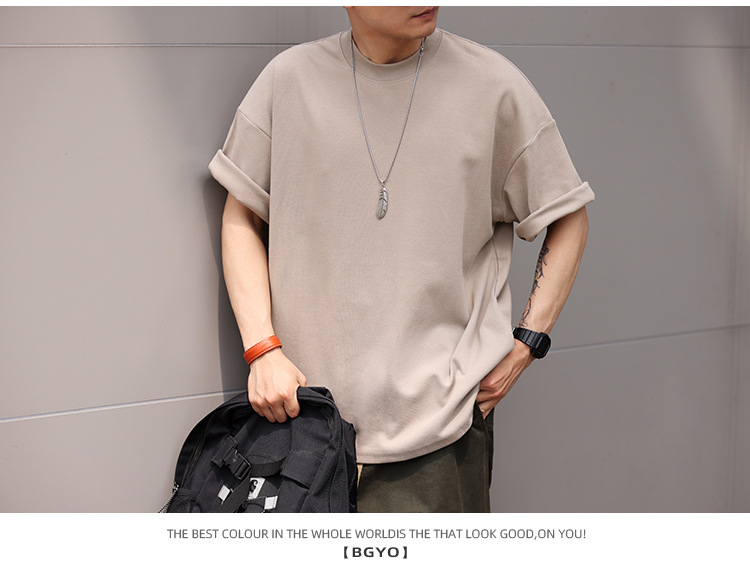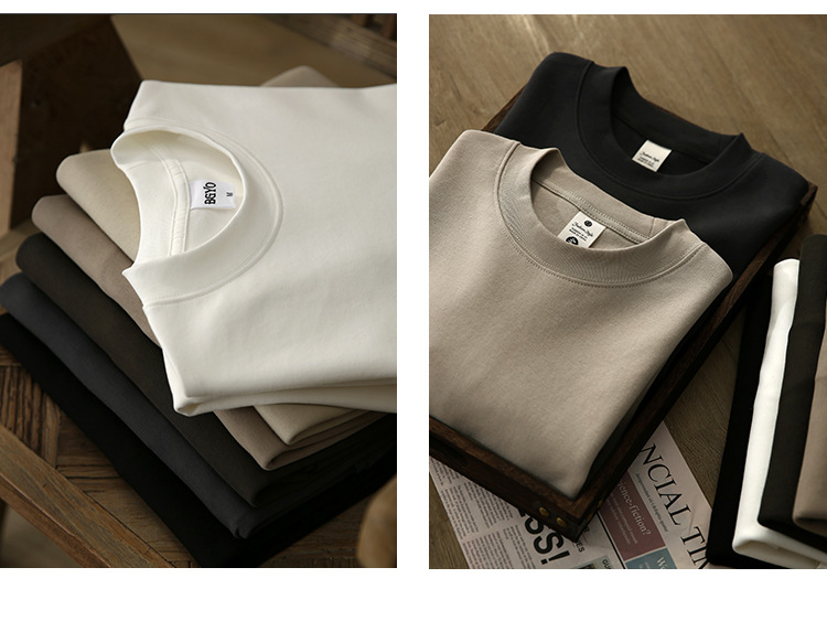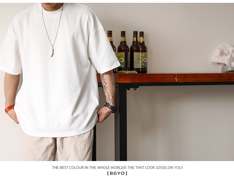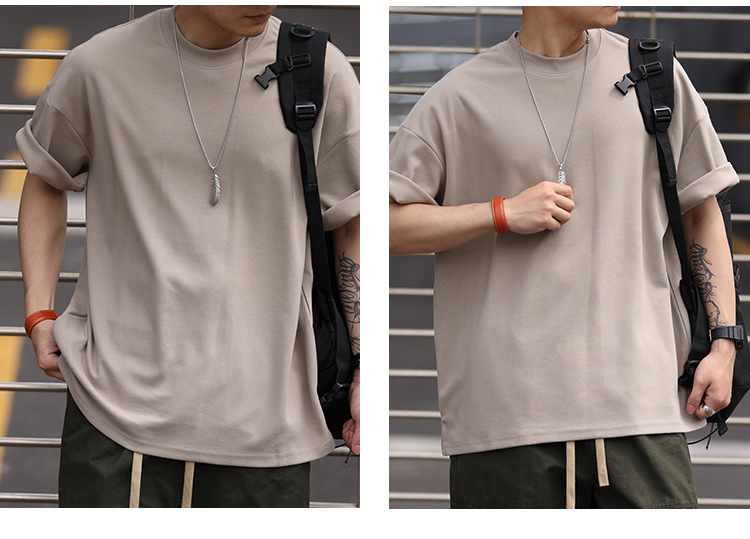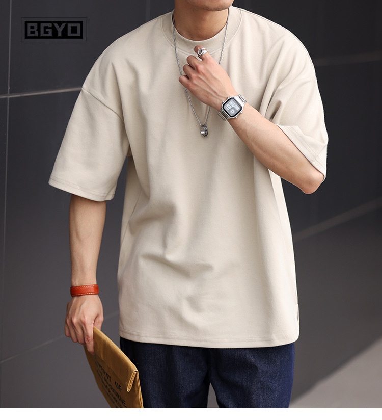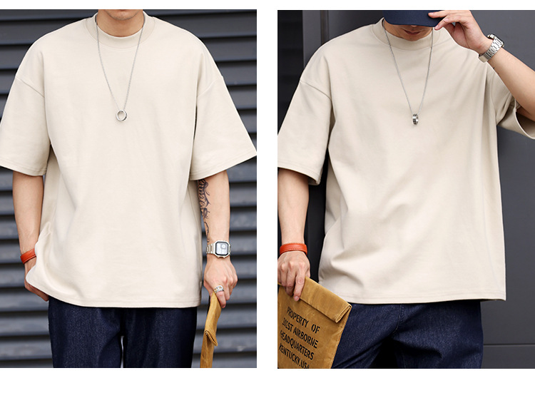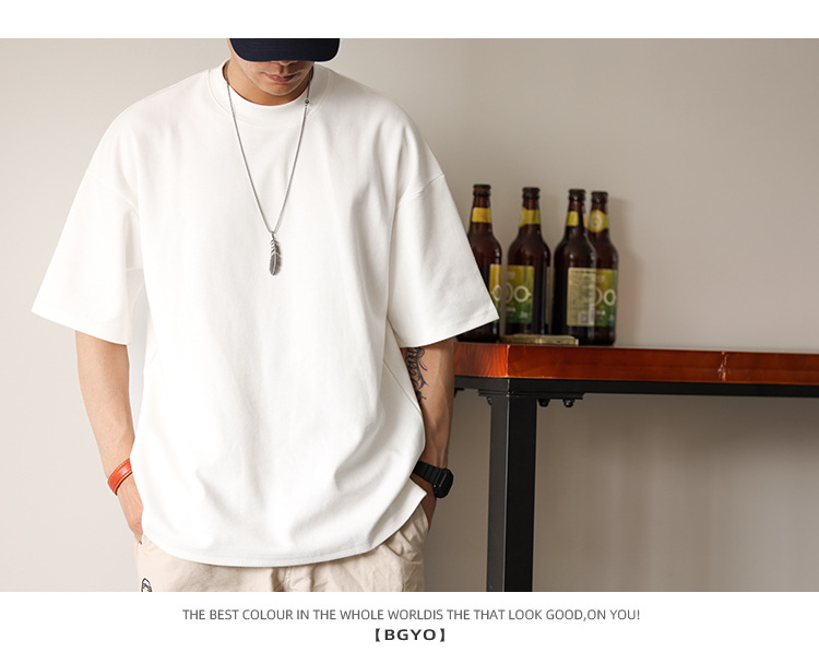 사슴 미국 300g 무거운 작은 목선 짧은 소매 티셔츠 남성용 느슨한 여름 캐주얼 단색 주름 방지 플러스 사이즈 티셔츠스토어 가기