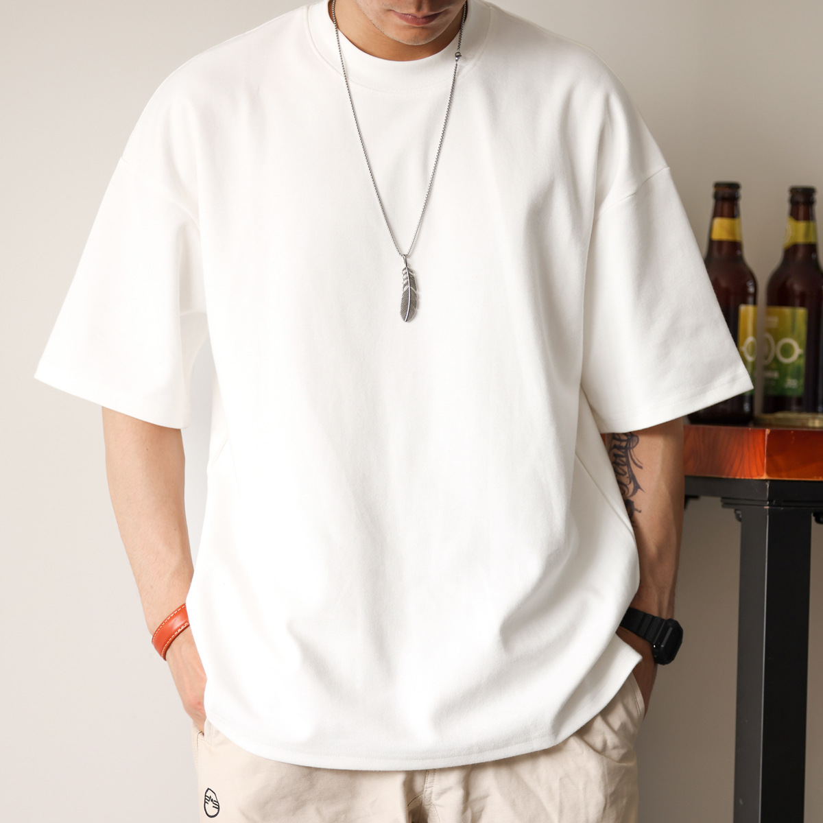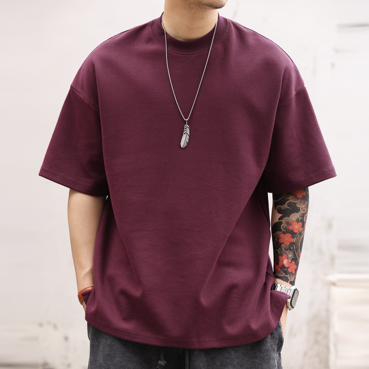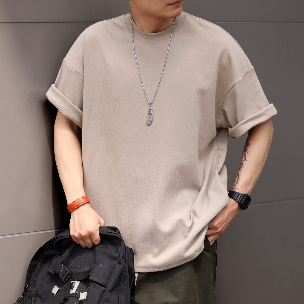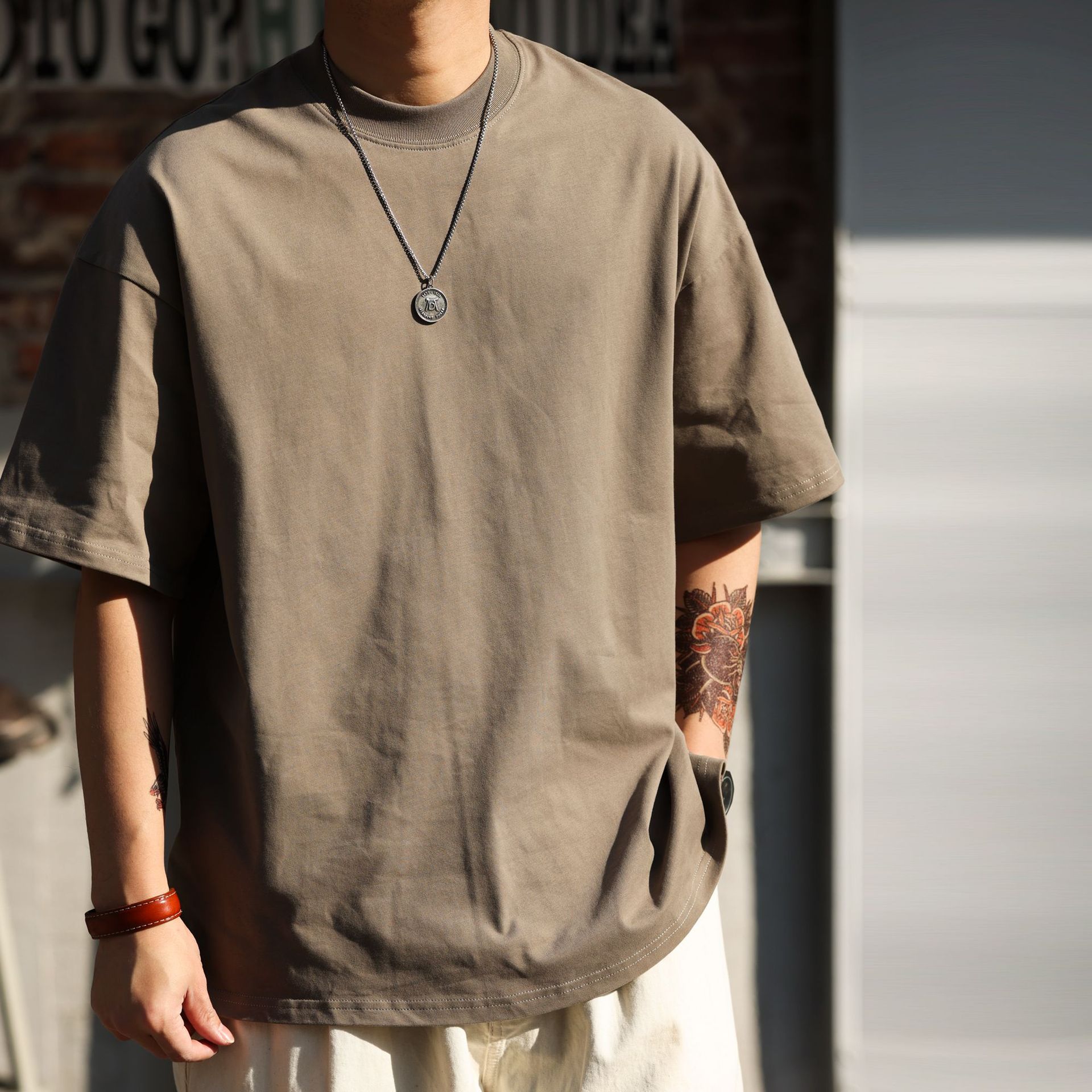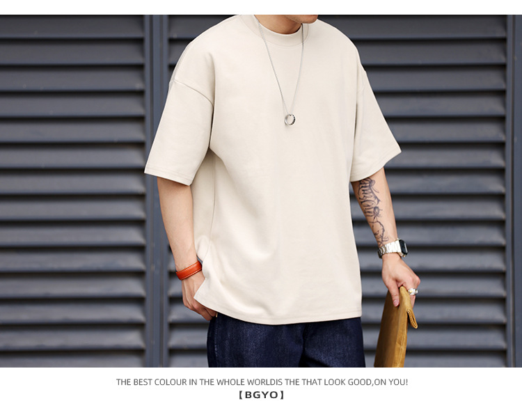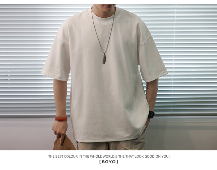 사슴 미국 300g 무거운 작은 목선 짧은 소매 티셔츠 남성용 느슨한 여름 캐주얼 단색 주름 방지 플러스 사이즈 티셔츠스토어 가기