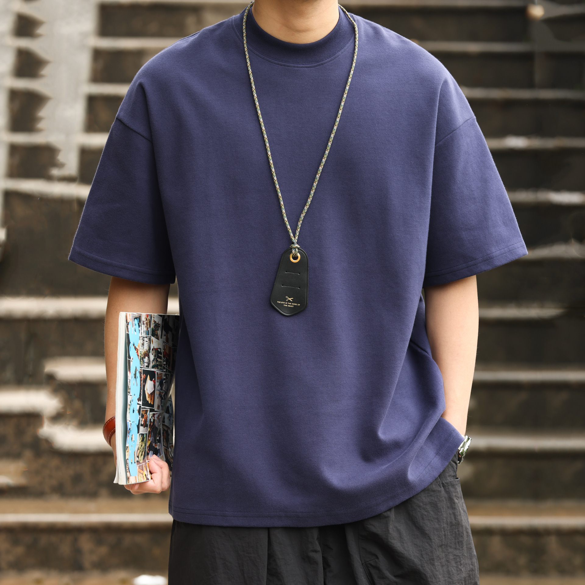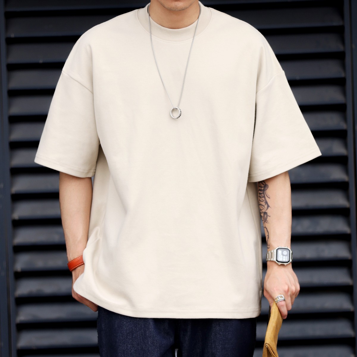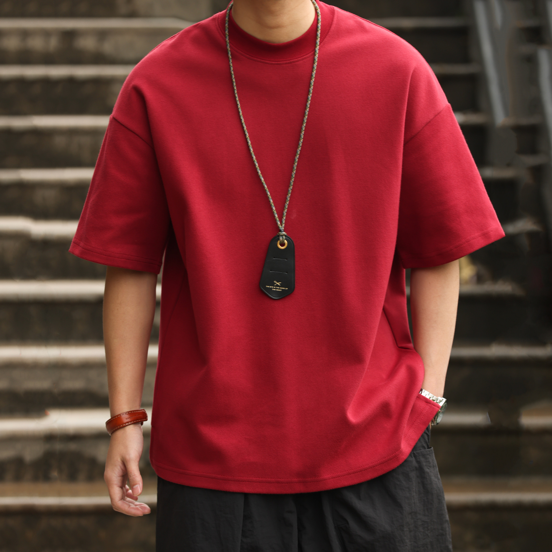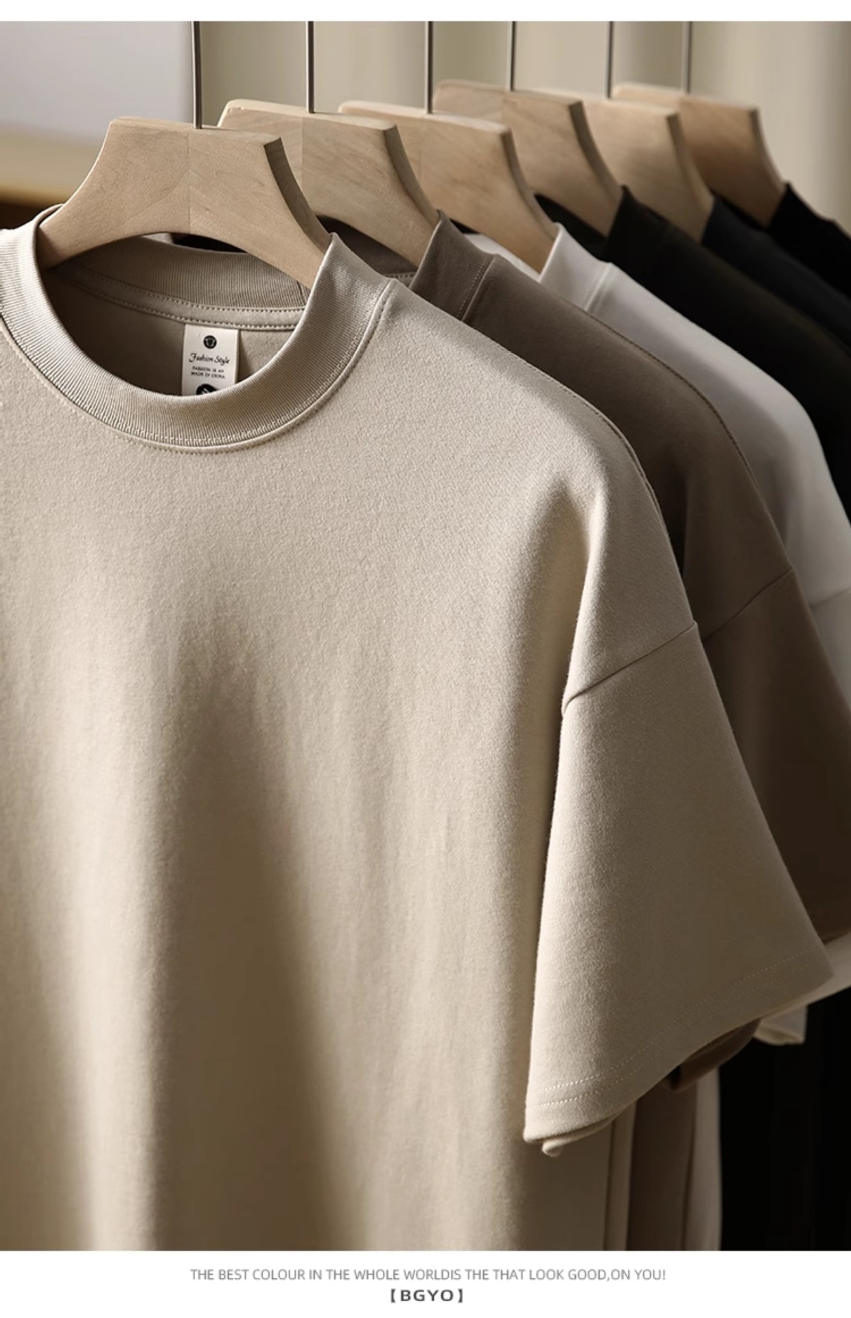 사슴 미국 300g 무거운 작은 목선 짧은 소매 티셔츠 남성용 느슨한 여름 캐주얼 단색 주름 방지 플러스 사이즈 티셔츠스토어 가기