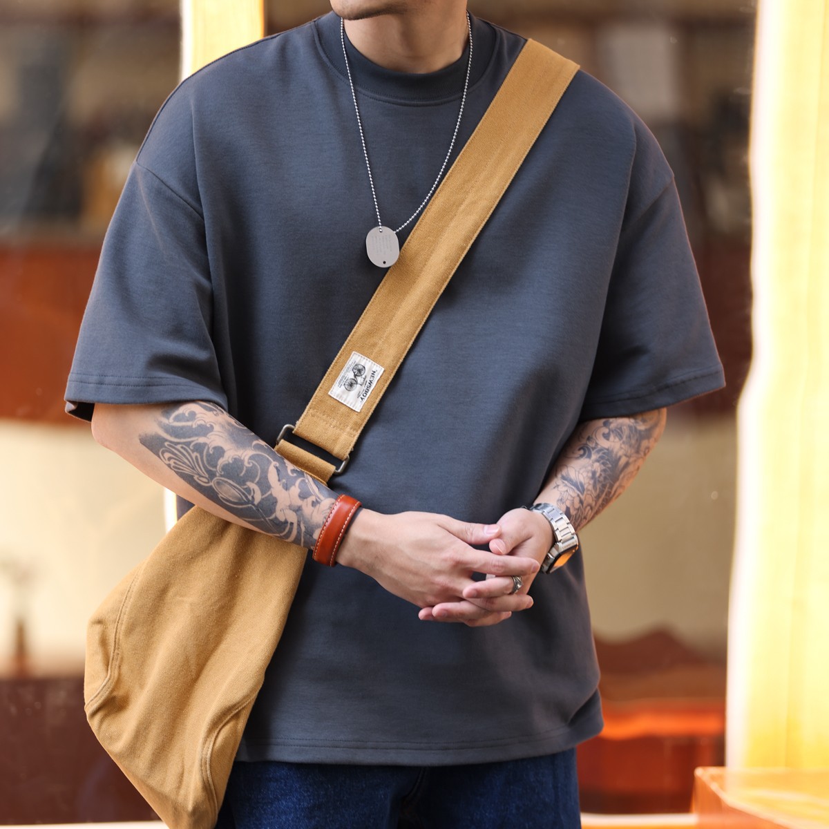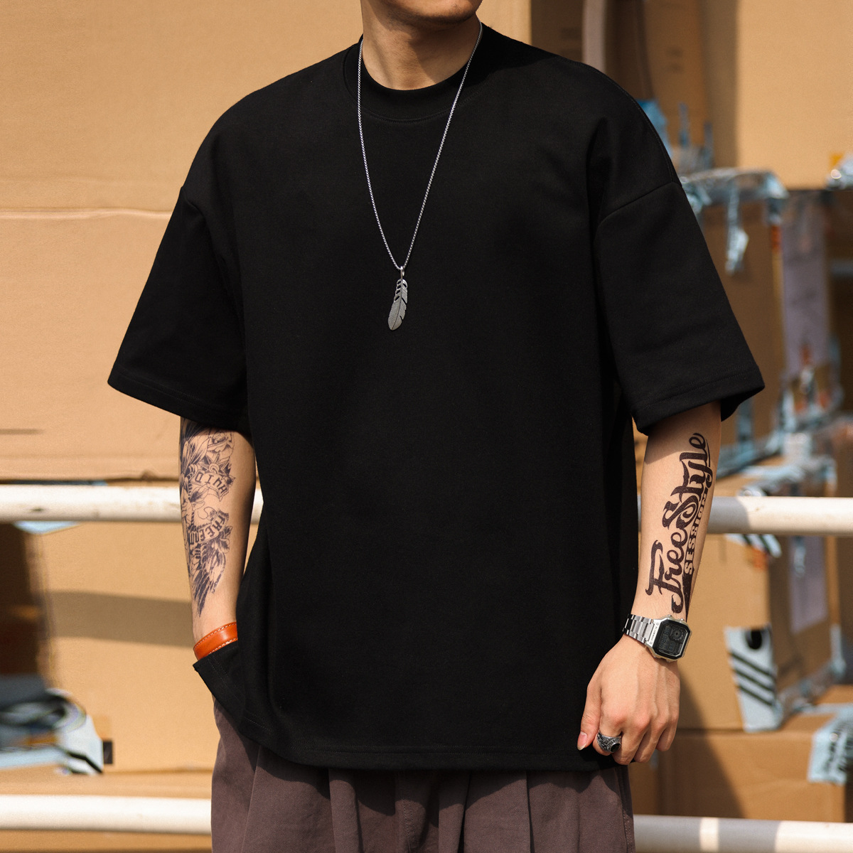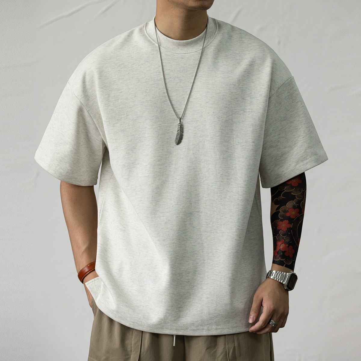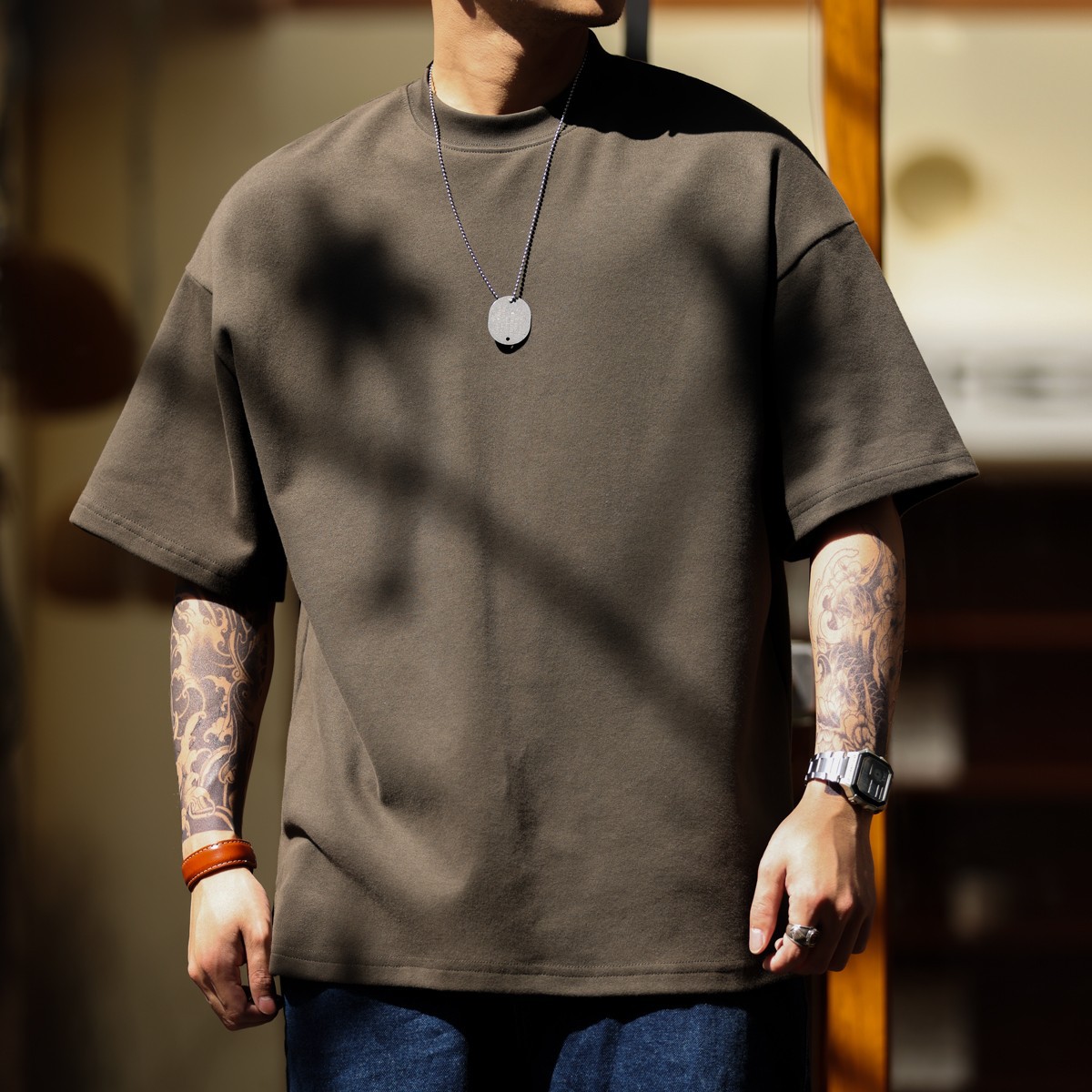 사슴 미국 300g 무거운 작은 목선 짧은 소매 티셔츠 남성용 느슨한 여름 캐주얼 단색 주름 방지 플러스 사이즈 티셔츠스토어 가기