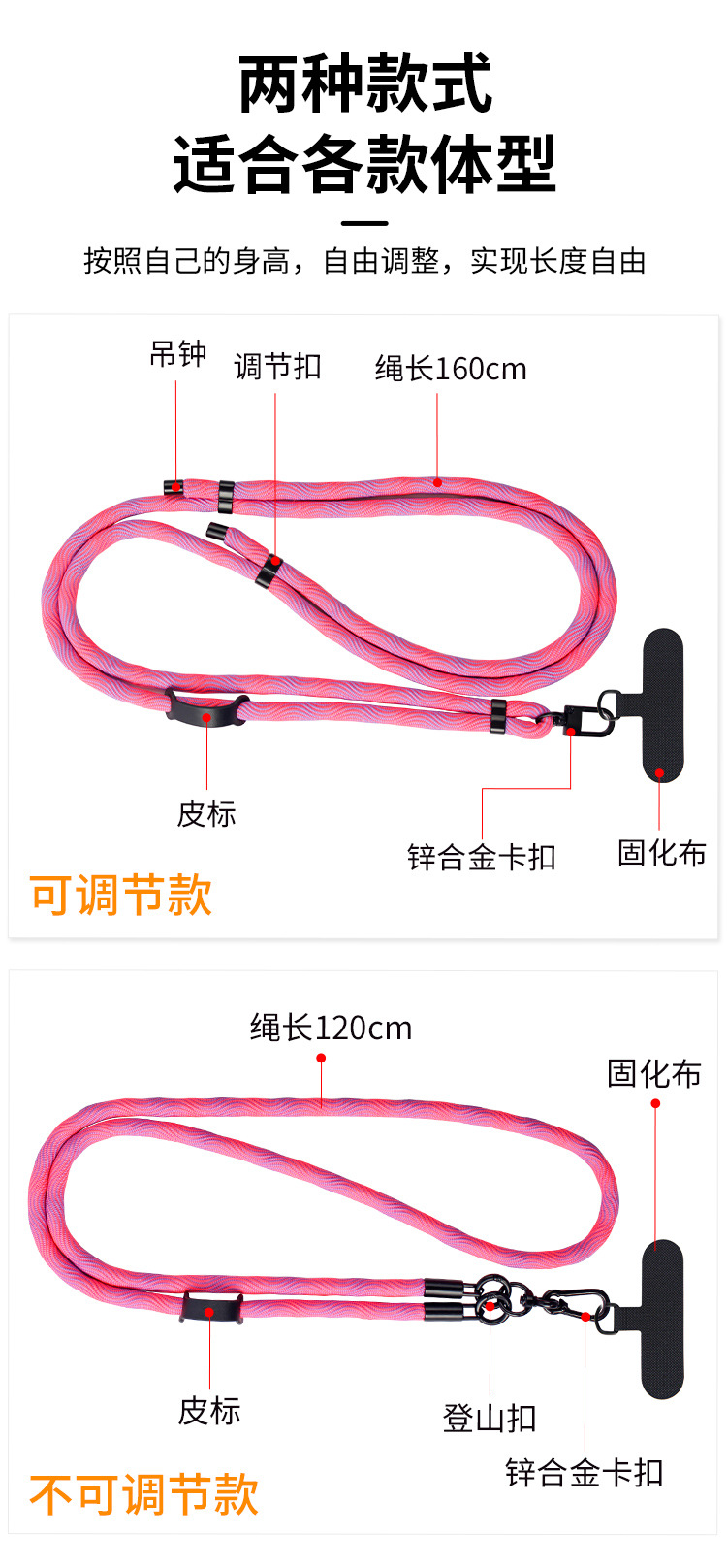 국경 도매 8mm 휴대 전화 끈 고급 감각 휴대 전화 끈 목은 메신저 3 대 1 휴대 전화 로프가 될 수 있습니다스토어 가기