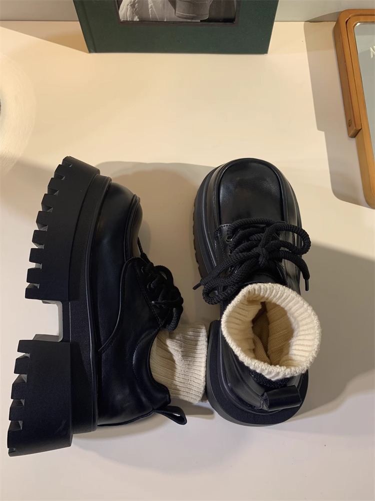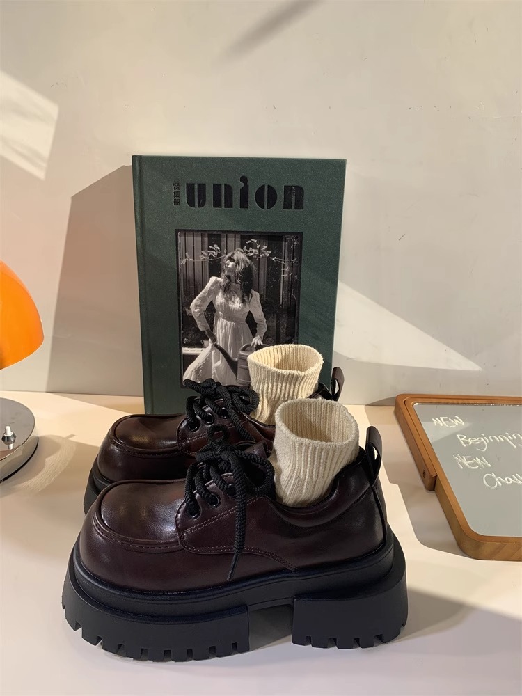영국 스타일의 검은 레이스 업 작은 가죽 신발 여성 신발 2025 새로운 봄과 가을 싱글 신발 대학 머핀 두꺼운 밑창 로퍼스토어 가기