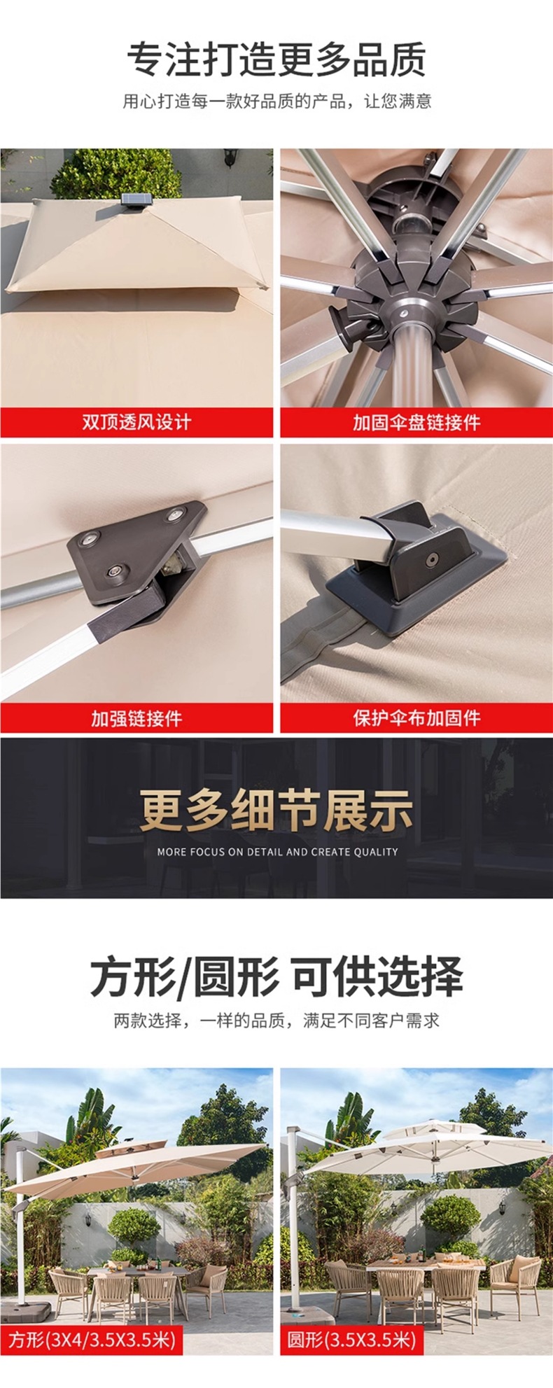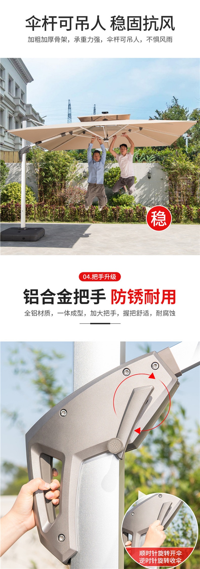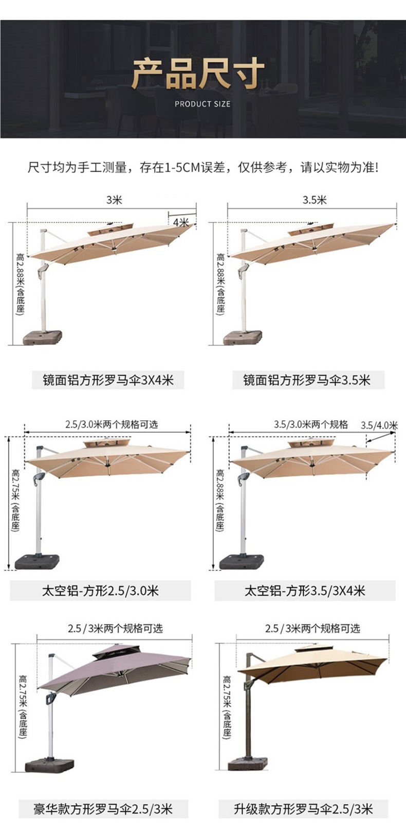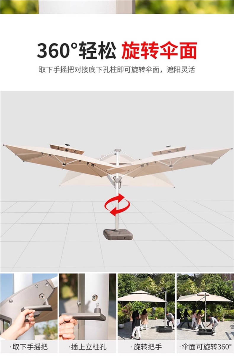 • 이중 머리 3* 3m 로마 우산, 두꺼워지고 무거운 물 탱크 [9.5CM 항공 알루미늄 막대]