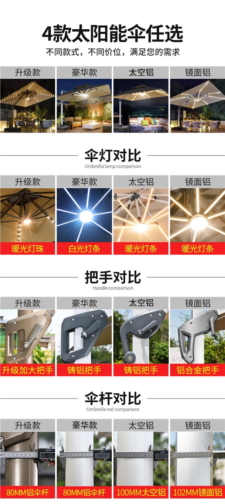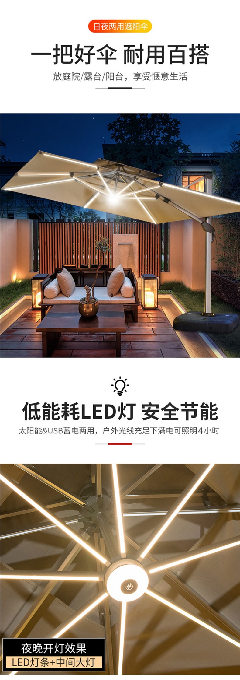 • 업그레이드된 태양광 램프 비드 모델: 정사각형 2.5m [8CM 알루미늄 기둥] [물 탱크 120kg 개 포함]