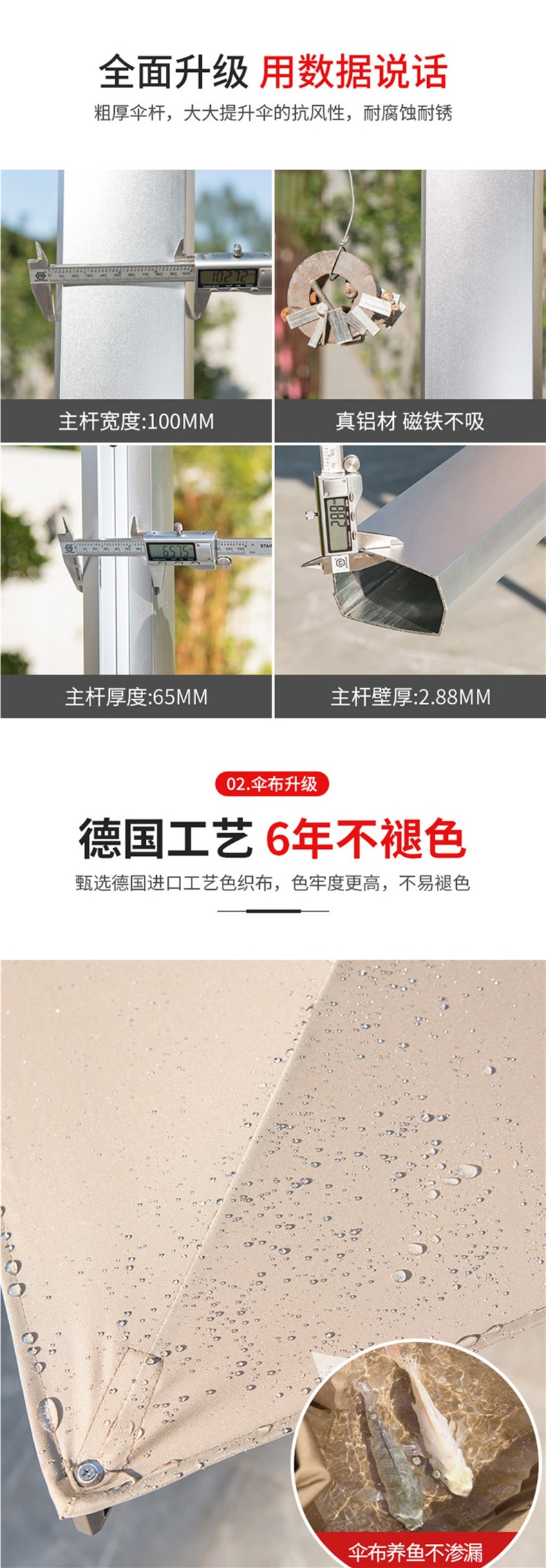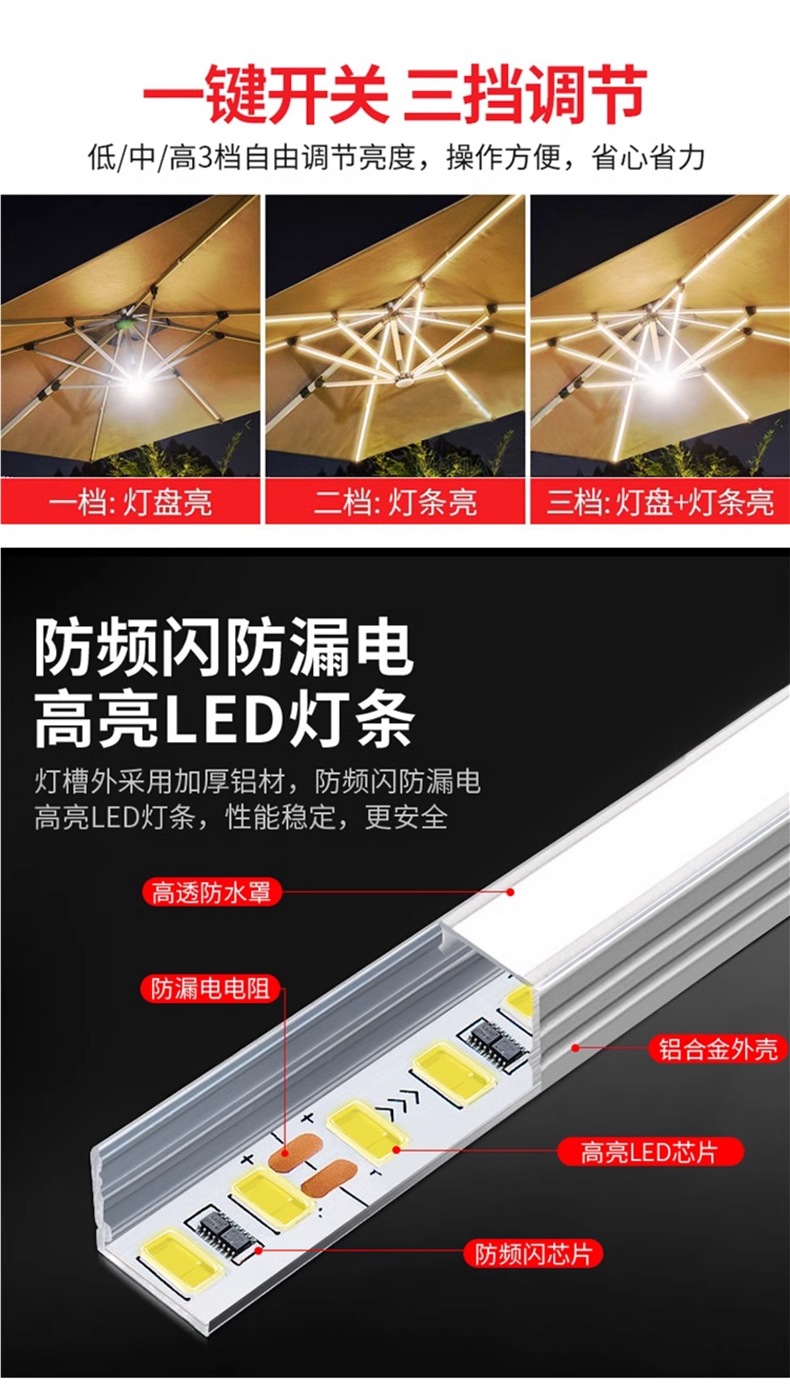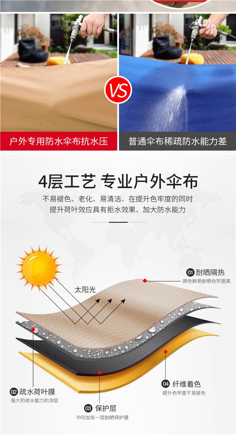 • 업그레이드된 태양광 램프 비드 모델: 정사각형 2.5m: 바퀴가 달린 물탱크 150kg개 포함 [8CM 알루미늄 기둥]