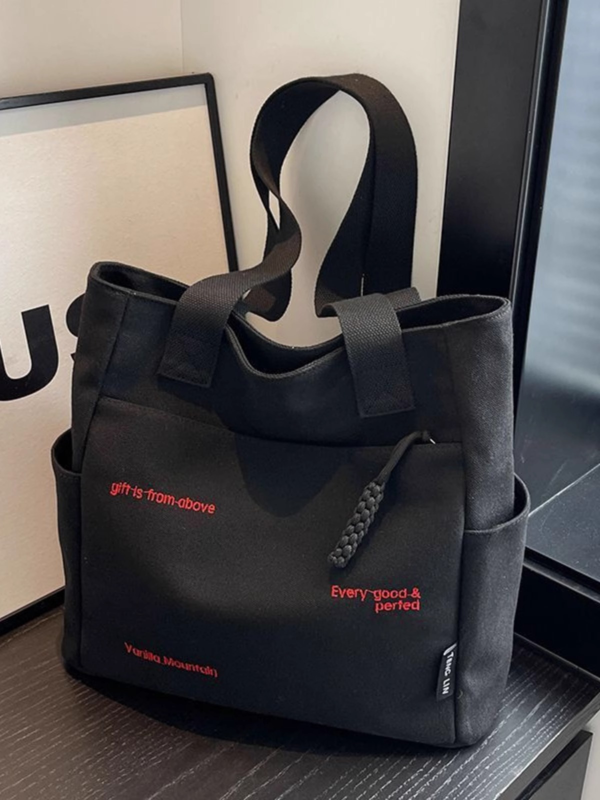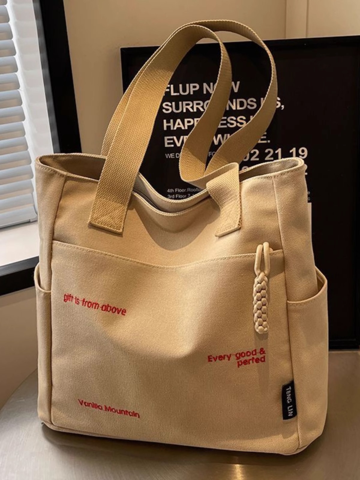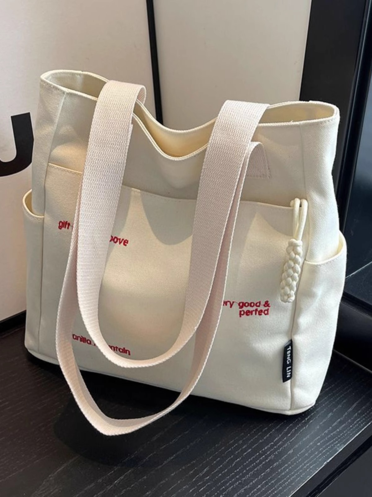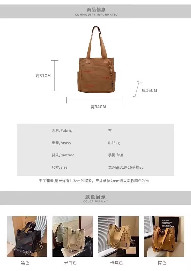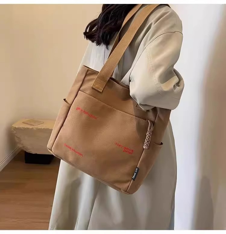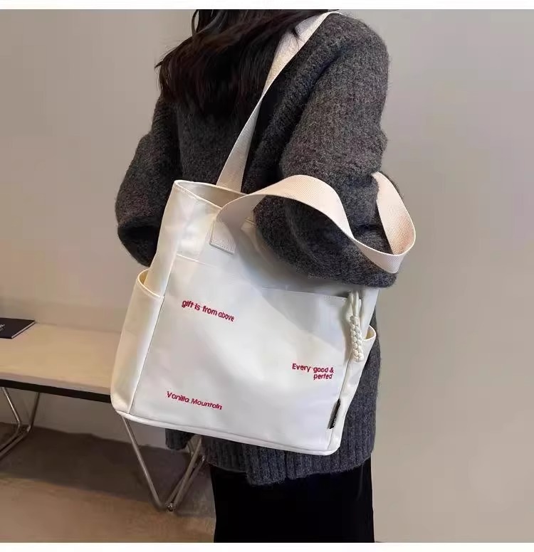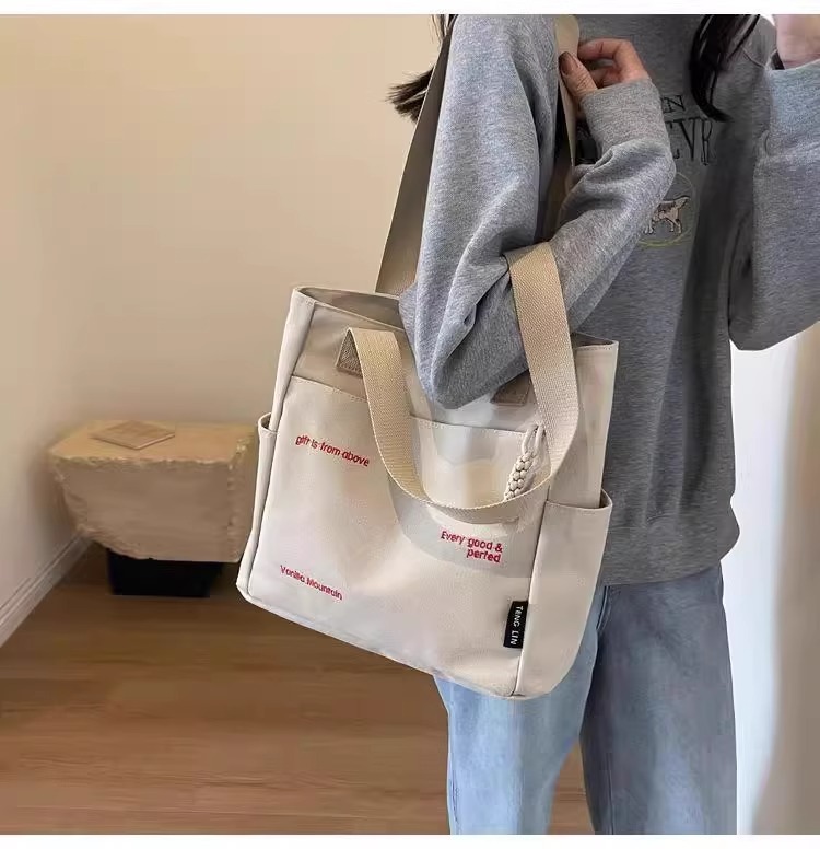 캔버스 가방 여성의 새로운 트렌디 자수 편지 휴대용 학생의 대용량 어깨 가방 캔버스 가방 통근스토어 가기