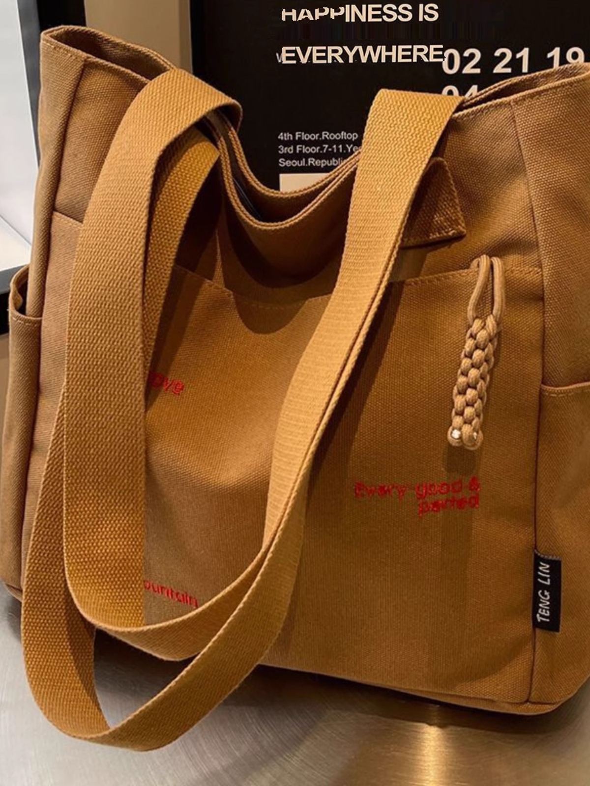 캔버스 가방 여성의 새로운 트렌디 자수 편지 휴대용 학생의 대용량 어깨 가방 캔버스 가방 통근