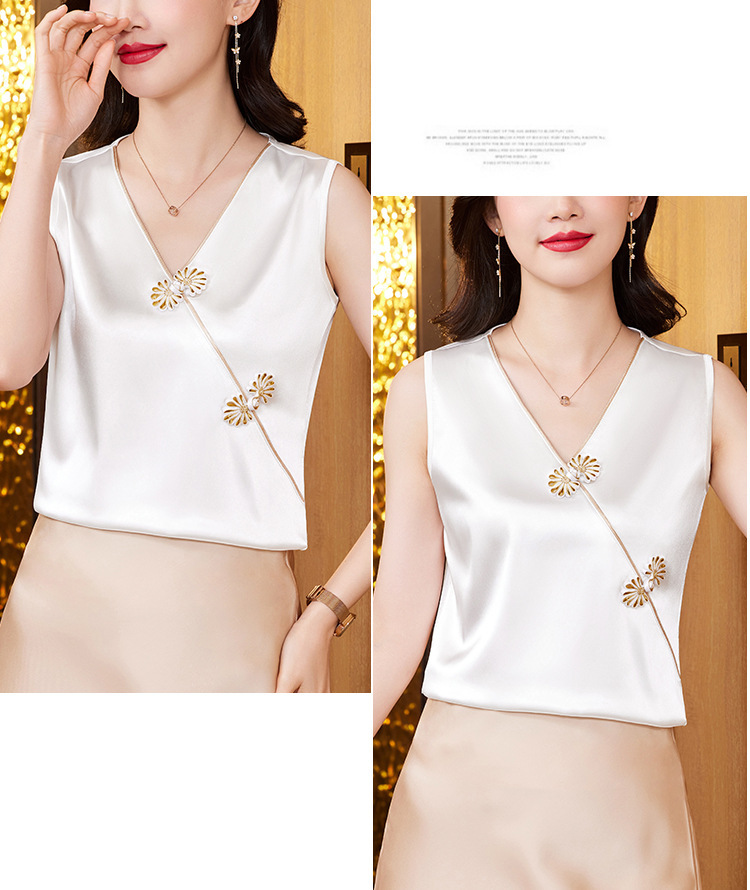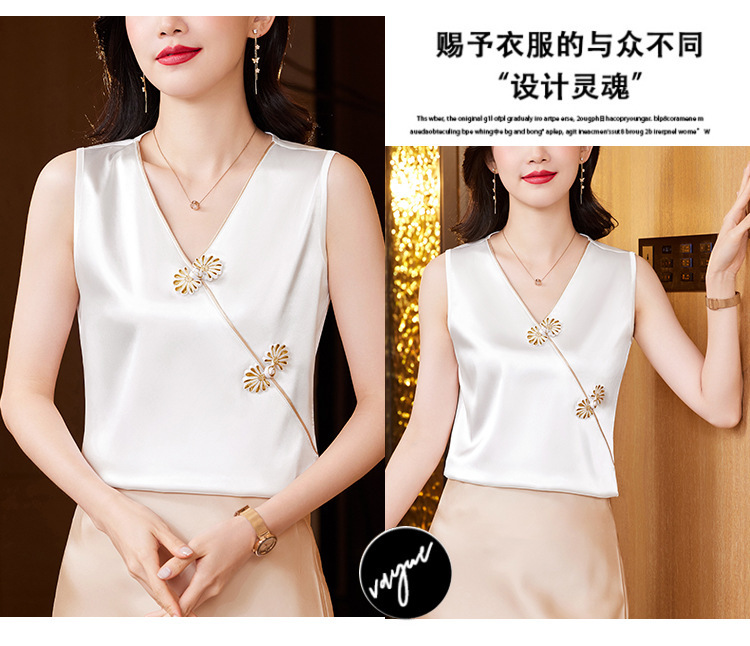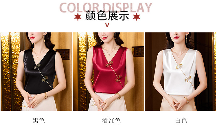 2025 새로운 Acetic Acid Satin Base 외부 민소매 탑으로 새로운 중국 스타일 V 넥 카미 솔 여성 내부 조끼스토어 가기