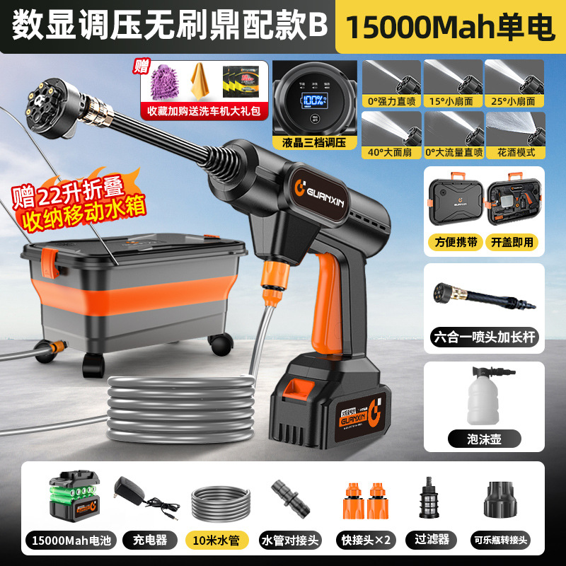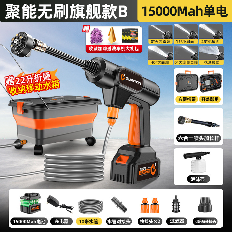 • 에너지 집약형 브러시리스 플래그십 모델 B-이동식 접이식 저장 물 탱크-15000MAh 단일 배터리-강력한 에너지 집약형 부스터-튜브 10m개 세차 선물 팩