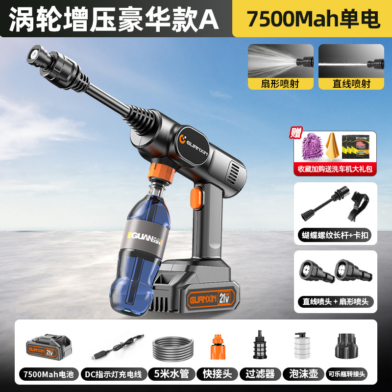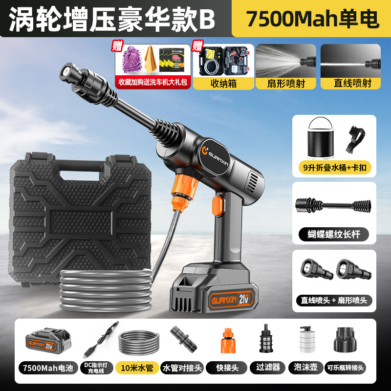 • 터보차저 럭셔리 모델 - A-7500MAh 단일 배터리 - 부스터 워터펌프 - 세차 선물팩