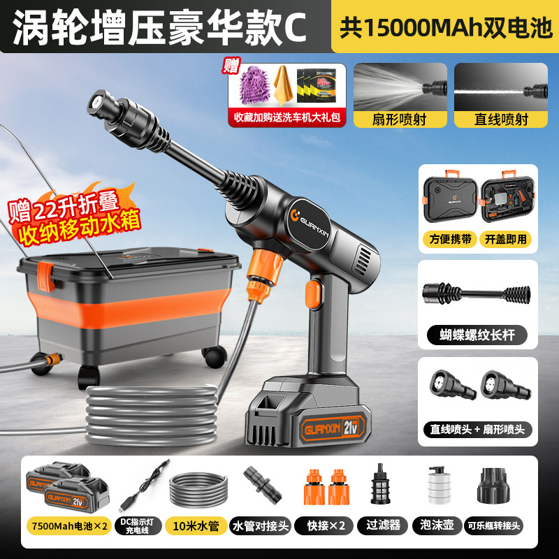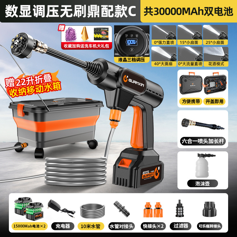 • 에너지 집약형 브러시리스 플래그십 모델 C - 이동식 접이식 수조 - 총 30000MAh 듀얼 배터리 - 강력한 에너지 집약형 부스터 - 10m 튜브 세차 선물 팩