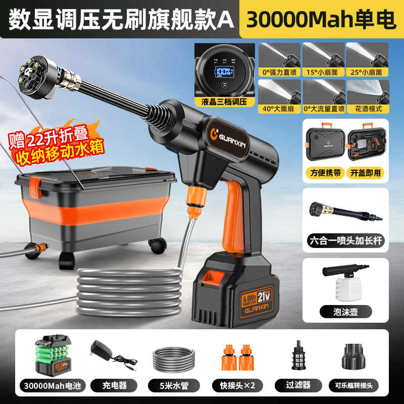 • 디지털 디스플레이 전압 조절 브러시리스(플래그십 B) - 30000MAh 단일 배터리 - 모바일 접이식 저장 물 탱크 - 3단계 조절 가능한 수압 선물 팩