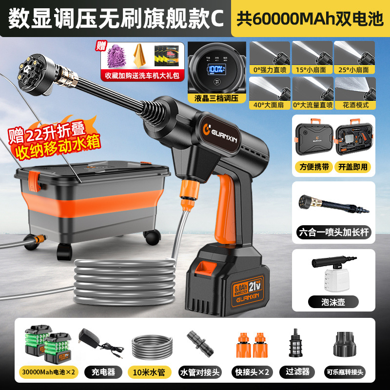 • 디지털 디스플레이 압력 조절 브러시리스(플래그십 C) - 60000MAh 듀얼 배터리 - 모바일 접이식 수조 - 3단계 수압 조절 가능 선물 팩