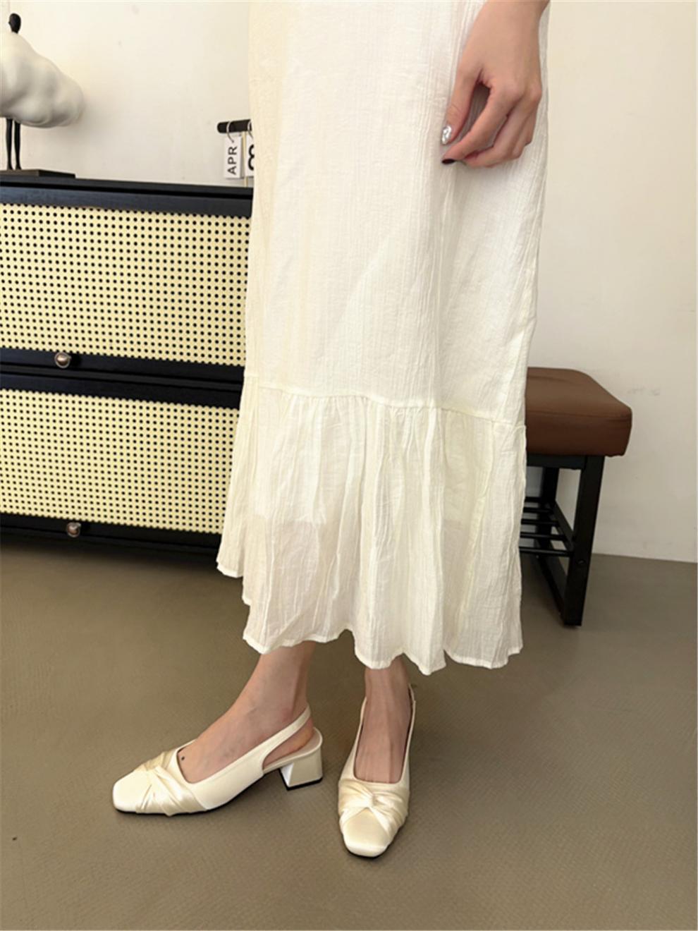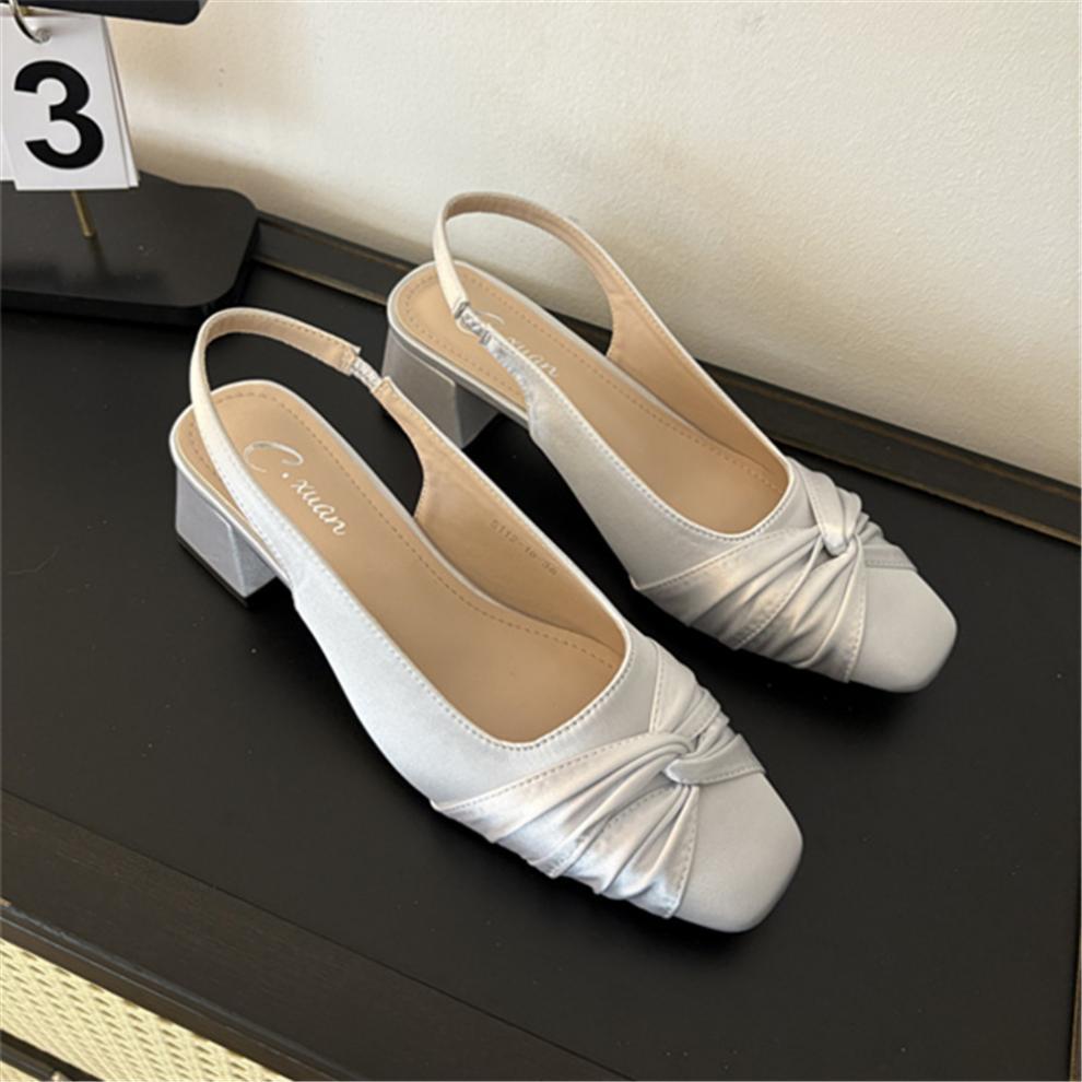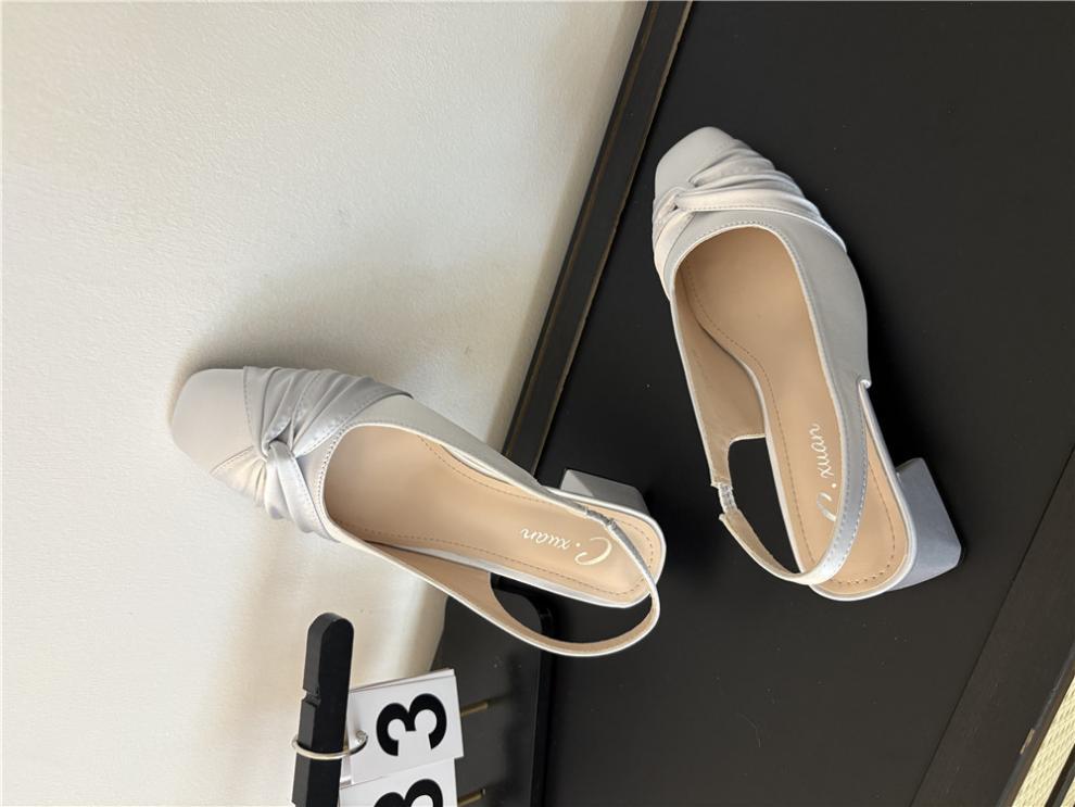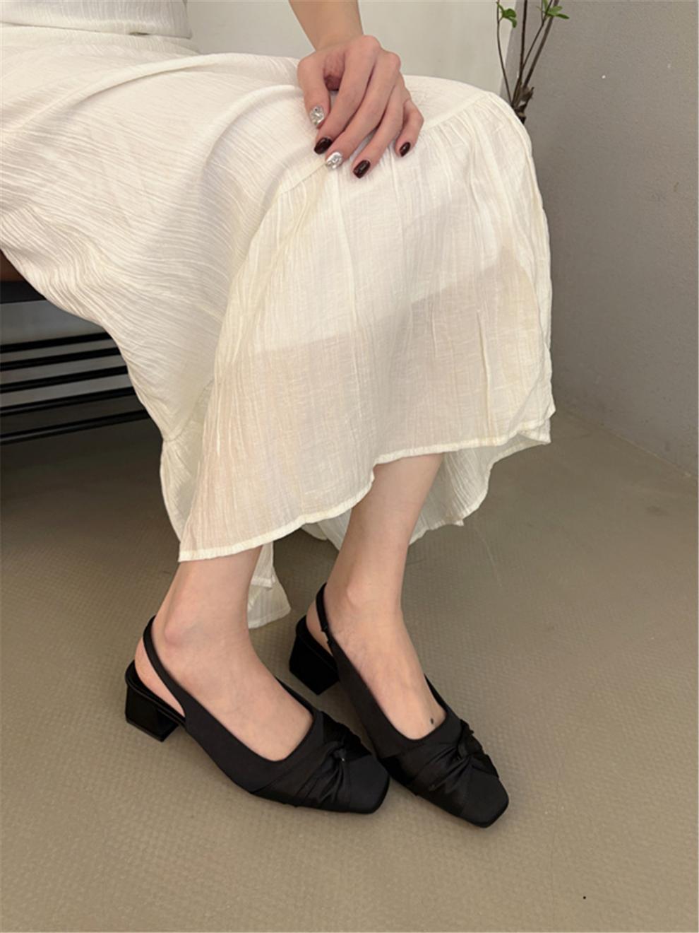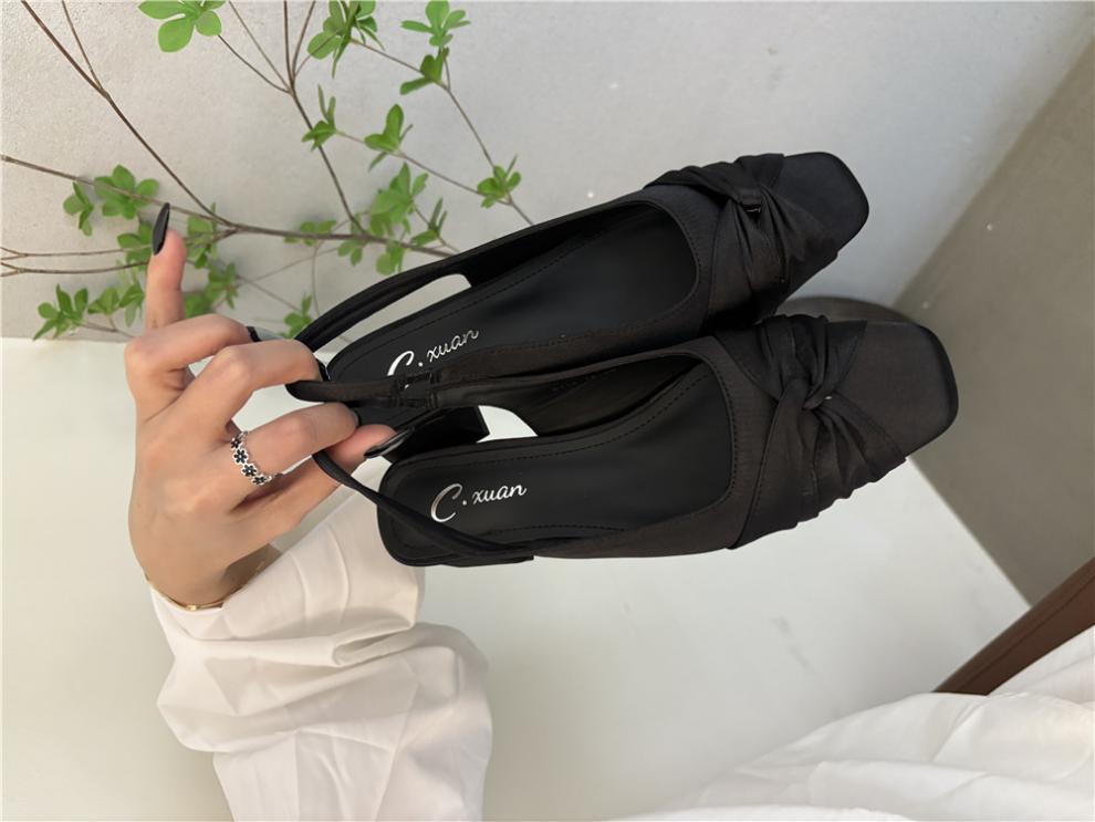 샤넬 스타일 스퀘어 헤드 후면 빈 신발 샌들 요정 두꺼운 힐 여름 2025 새로운 스타일 바오 터우 힐 신발스토어 가기