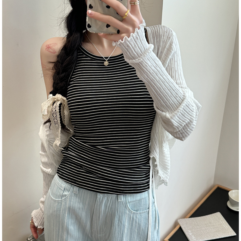 엄밀히 선정한 2025 신형 스트라이프베이스 섹시 카미솔 여자 슬림핏 슬리밍 올매치 민소매 탑스토어 가기