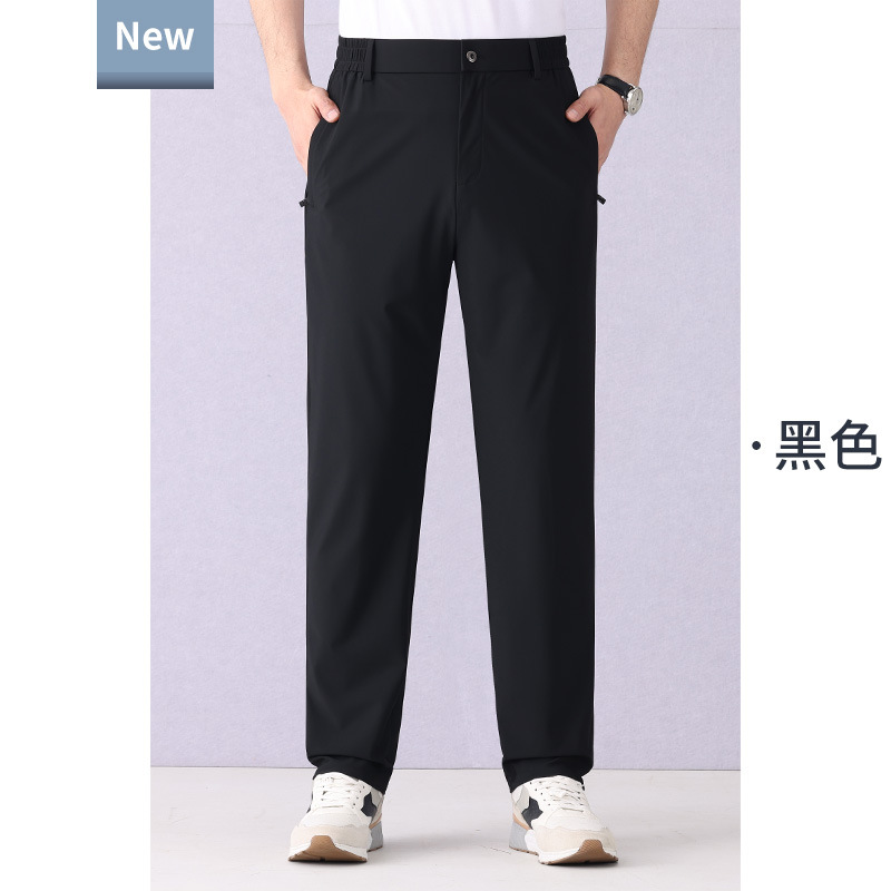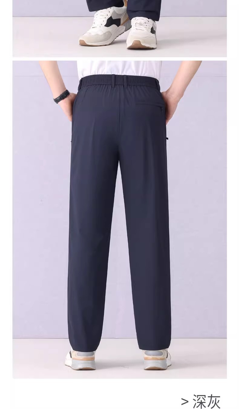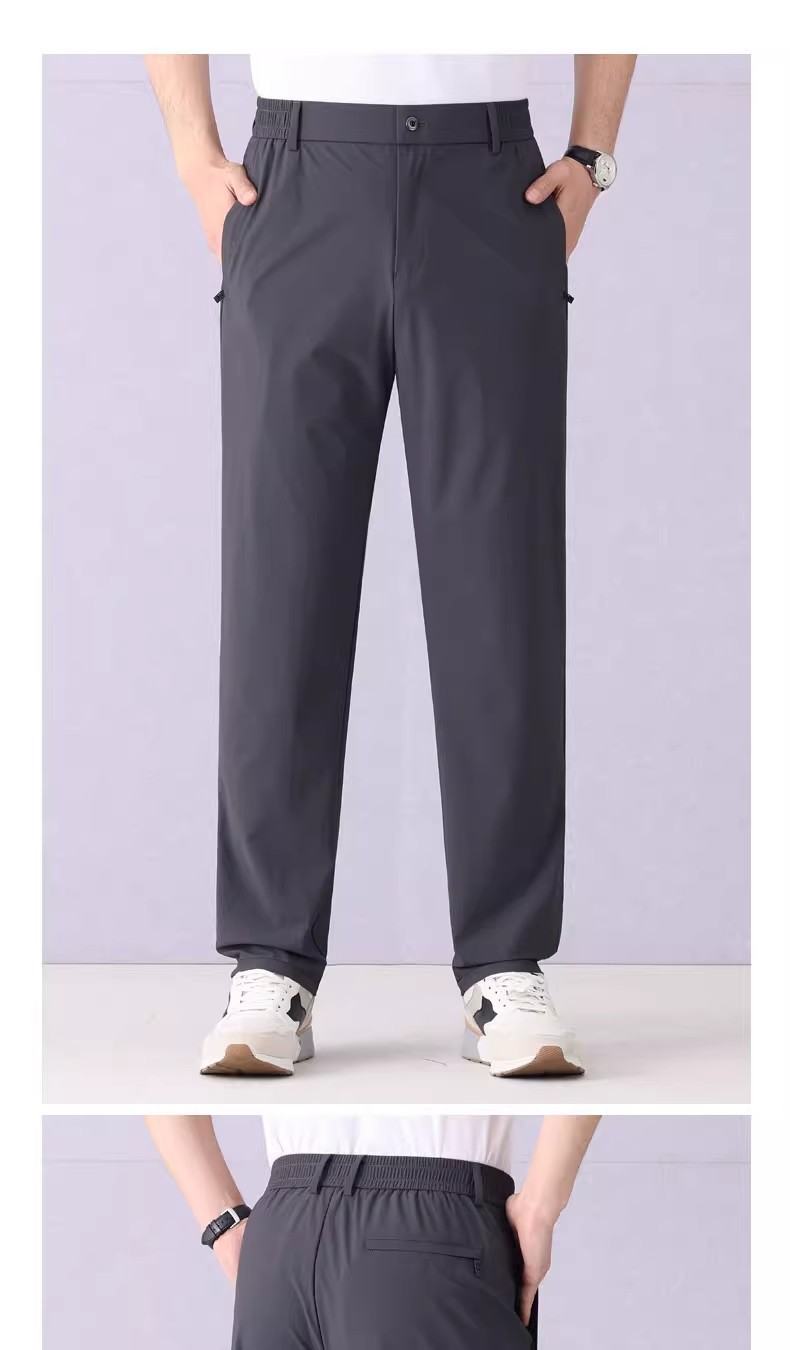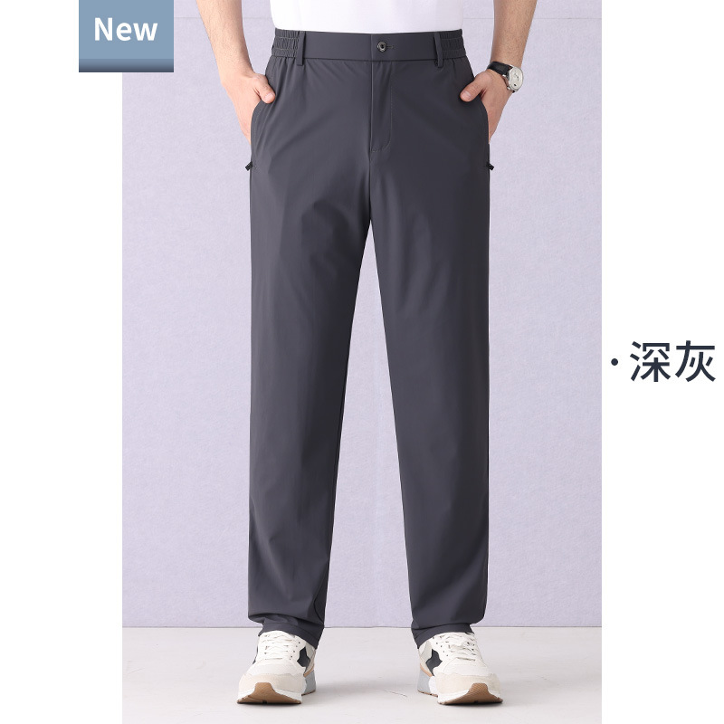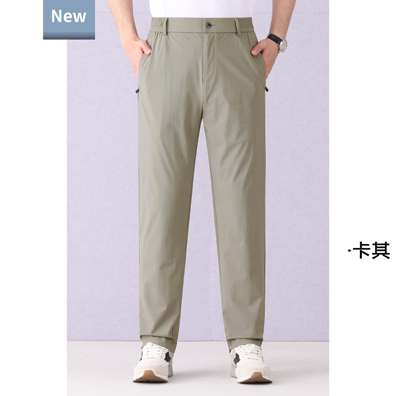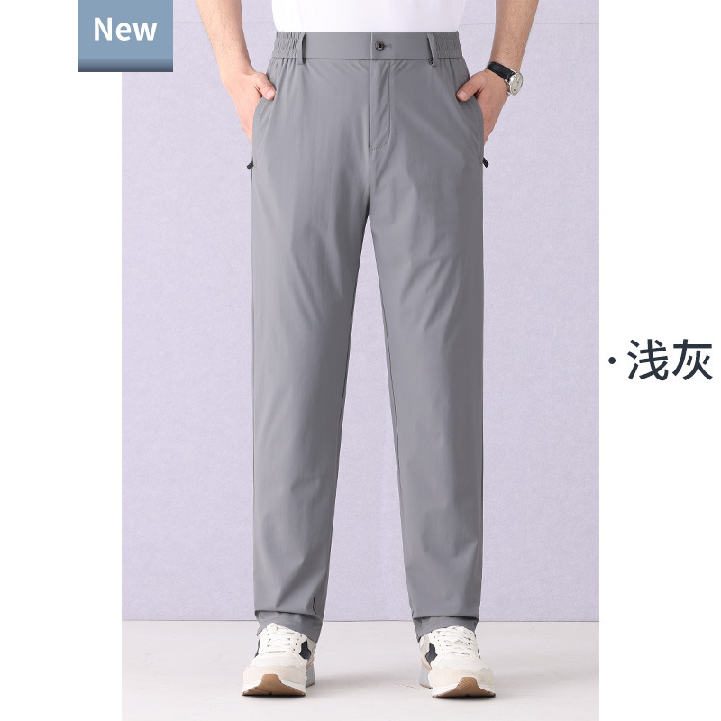 아이스 실크 탄성 남성용 캐주얼 바지 여름 얇은 직선 통기성 바지 안티 주름 스포츠 캐주얼 남성용 바지스토어 가기