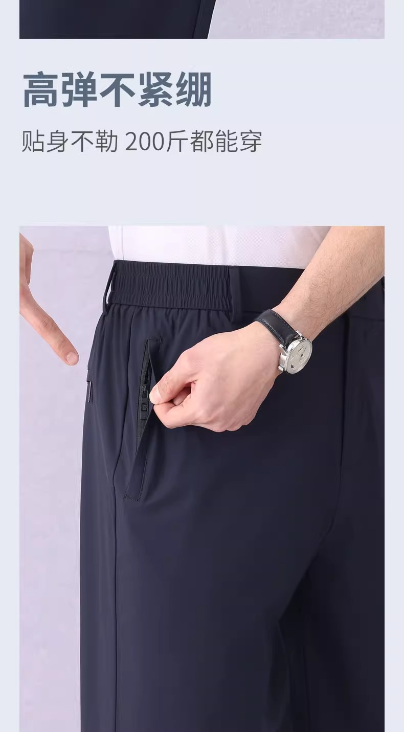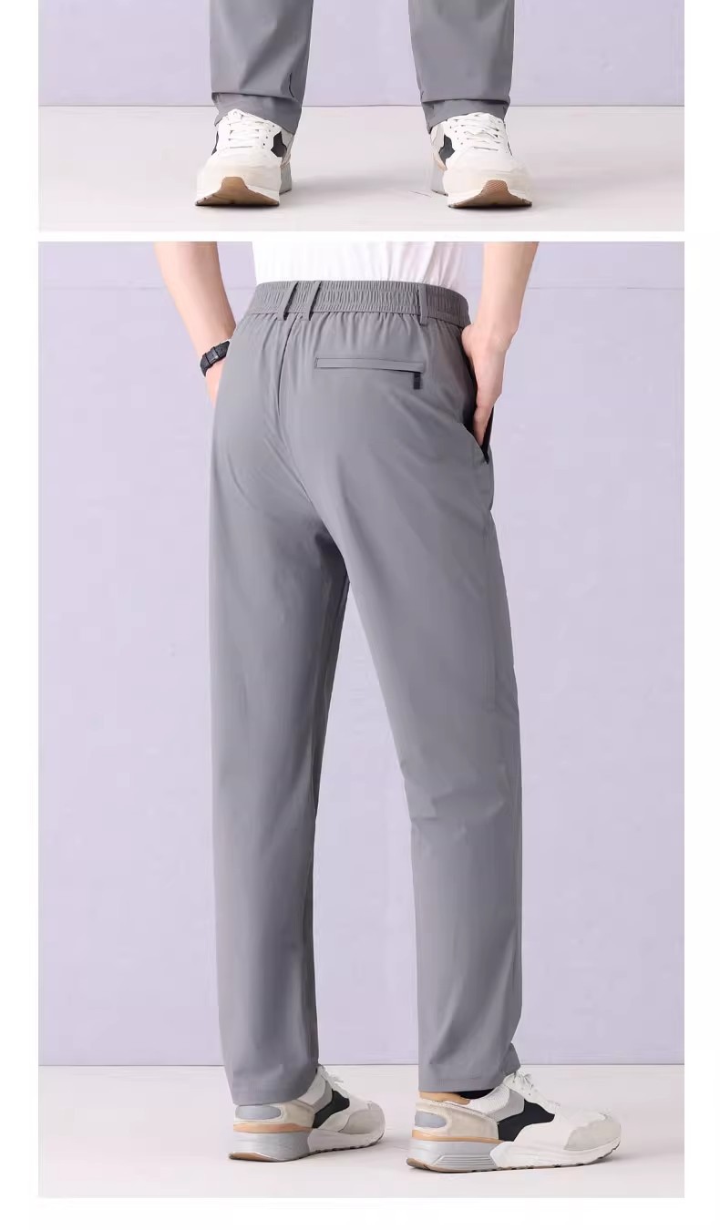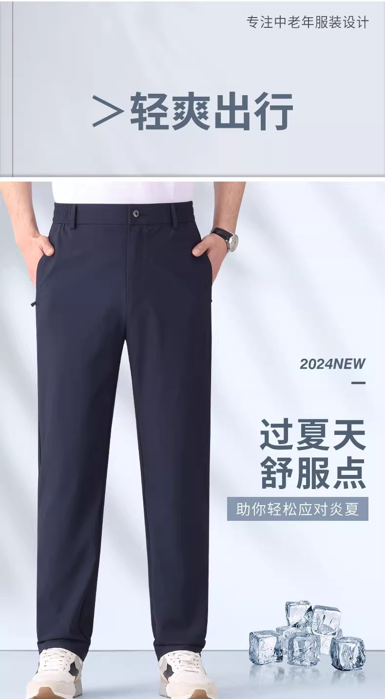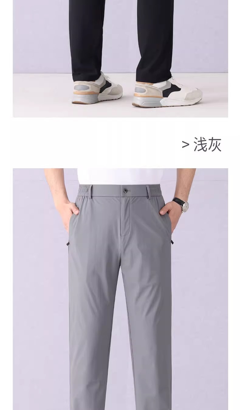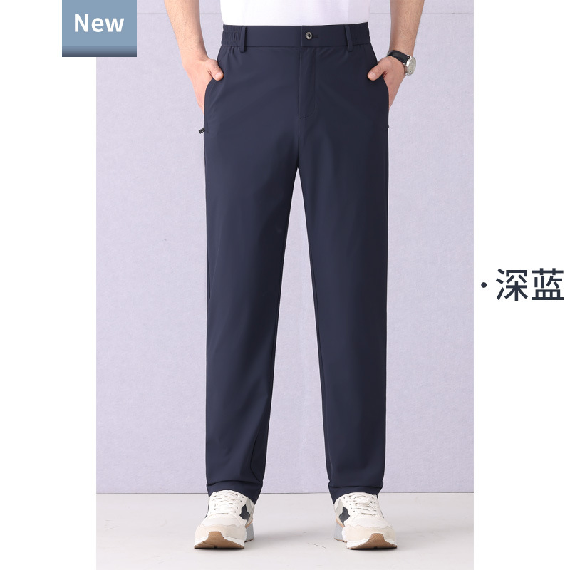 아이스 실크 탄성 남성용 캐주얼 바지 여름 얇은 직선 통기성 바지 안티 주름 스포츠 캐주얼 남성용 바지스토어 가기
