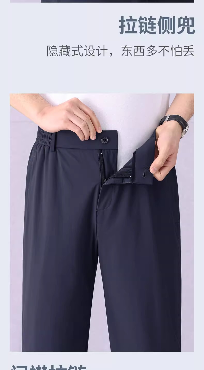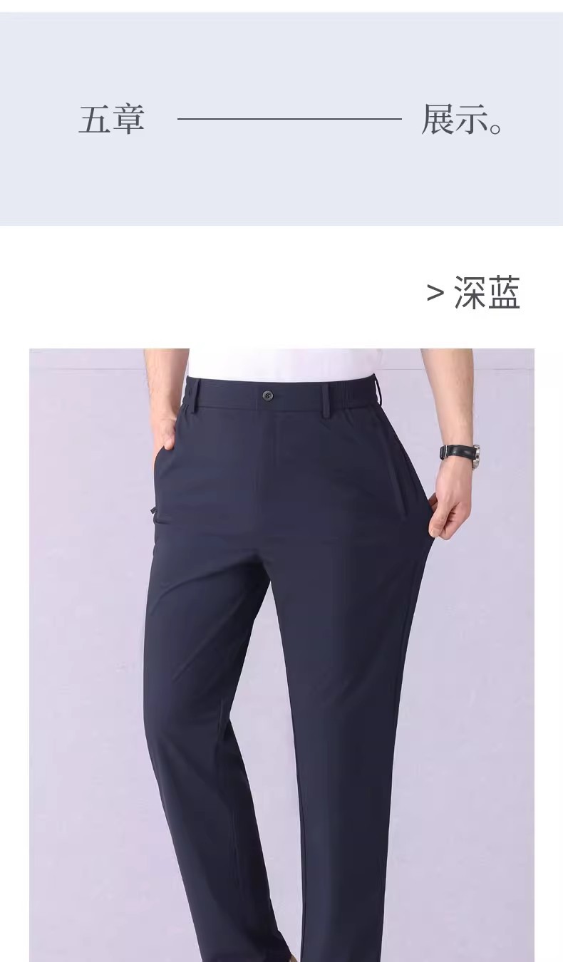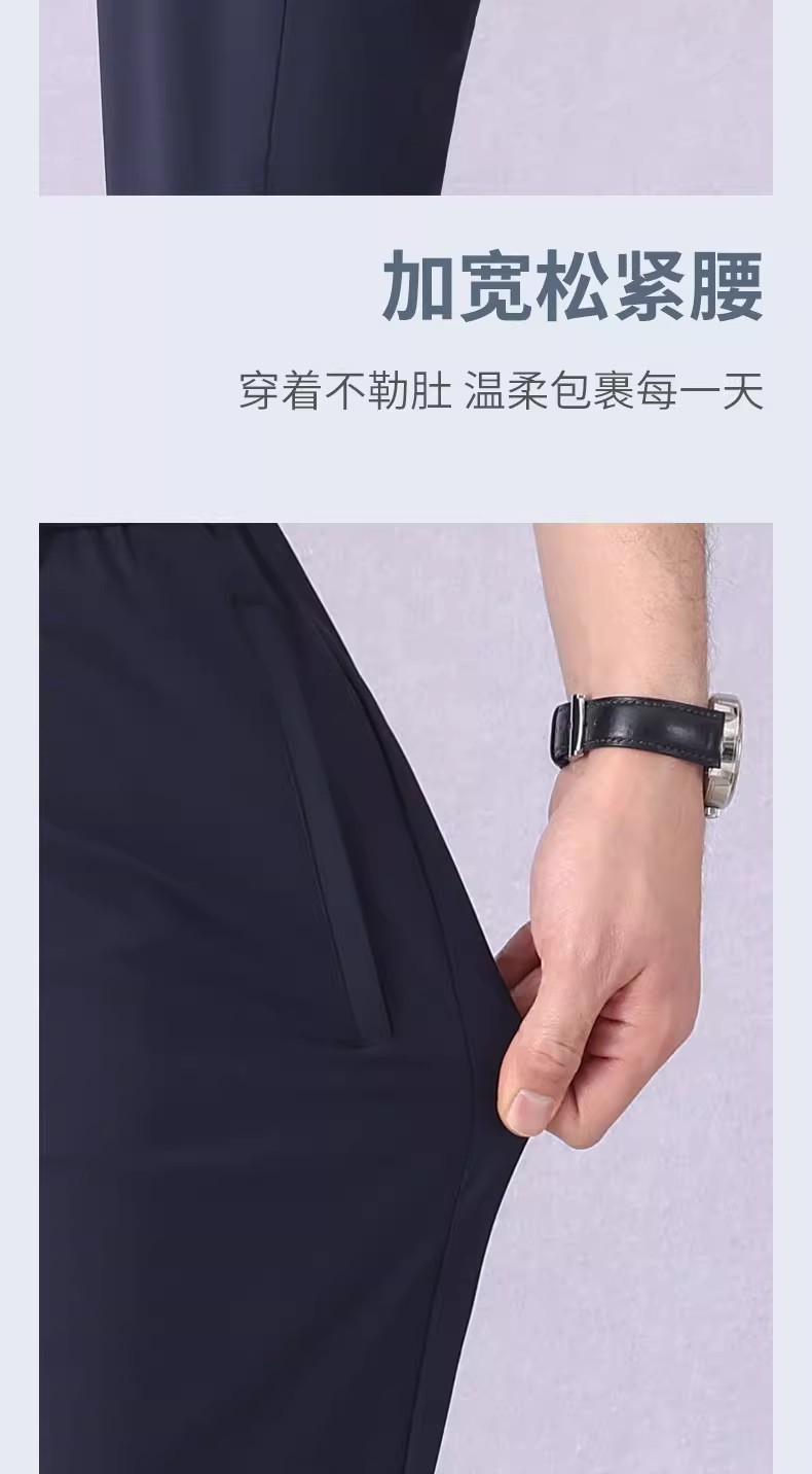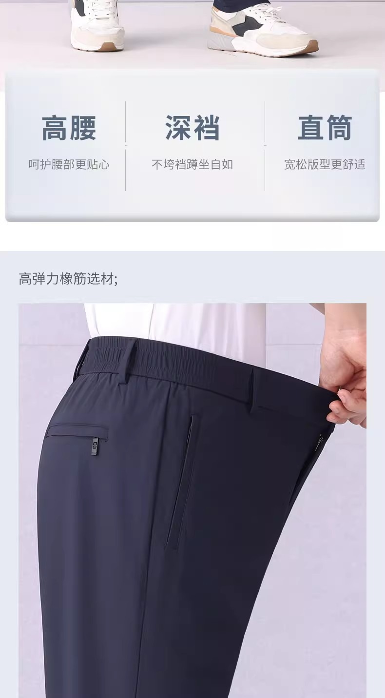 아이스 실크 탄성 남성용 캐주얼 바지 여름 얇은 직선 통기성 바지 안티 주름 스포츠 캐주얼 남성용 바지스토어 가기