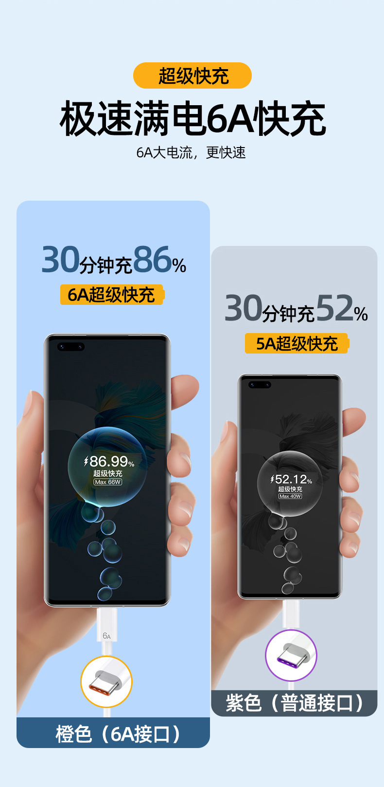 6A 데이터 라인 유형-c는 화웨이 데이터 라인 슈퍼 고속 충전 라인 USB 휴대 전화 충전 라인 화웨이 고속 충전에 적합합니다.스토어 가기