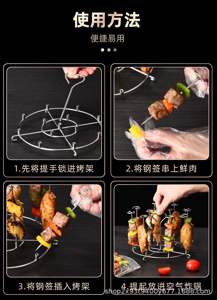 304L 스테인레스 스틸 에어 프라이어 수직 그릴 유니버설 케밥 로스트 사인 로스트 바늘 주방 가정용 오븐 액세서리