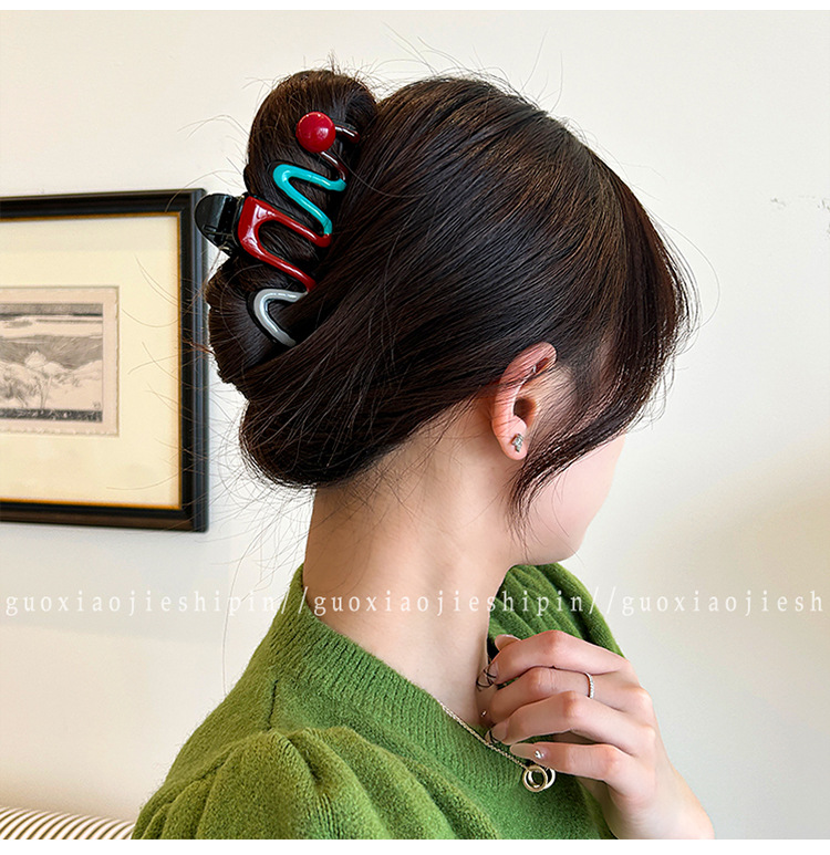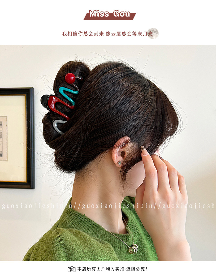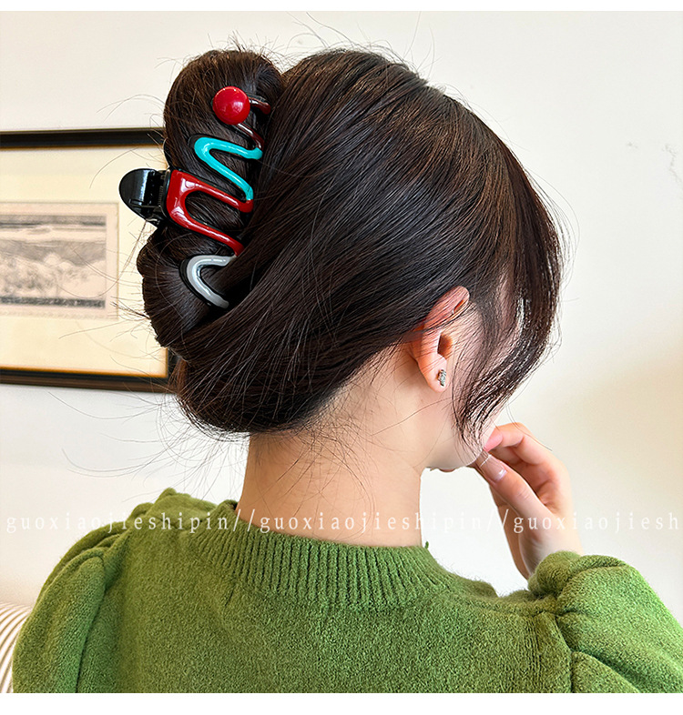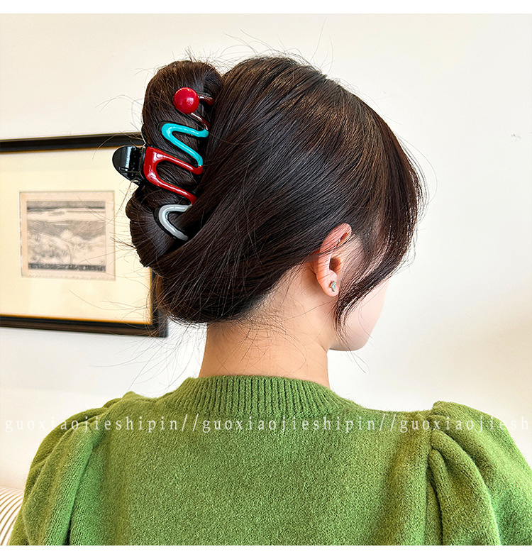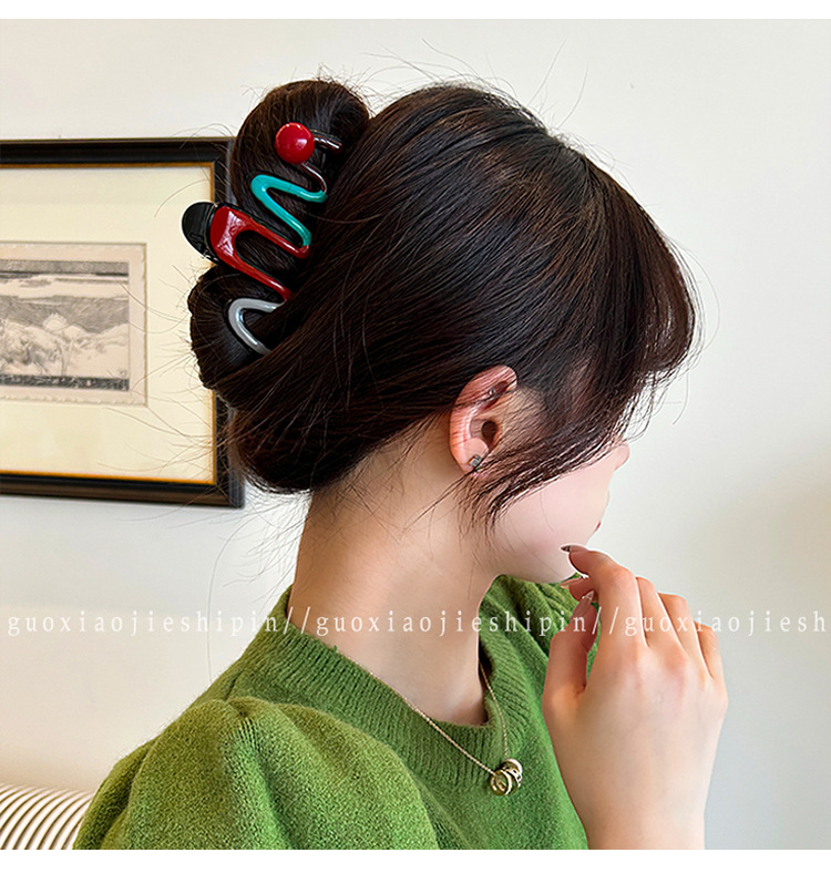 2025년 신형 여성 고급 대형 클립 헤어 액세서리, 대비색 헤어 클립, 뒷머리 상어 클립 헤어 클립 헤드 액세서리스토어 가기