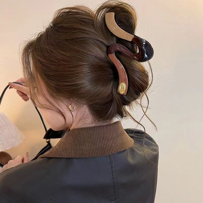 2025년 신형 여성 고급 대형 클립 헤어 액세서리, 대비색 헤어 클립, 뒷머리 상어 클립 헤어 클립 헤드 액세서리