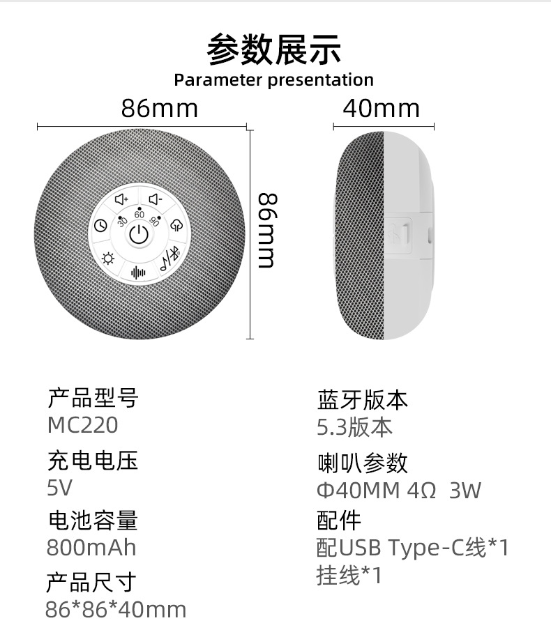 소스 제조업체 휴대용 백색 소음 수면 악기 블루투스 스피커 39 음악 저압 수면 타이밍 디밍 야간 조명