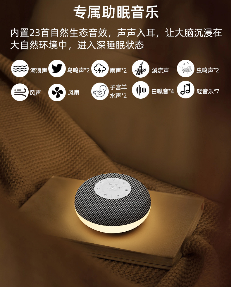 소스 제조업체 휴대용 백색 소음 수면 악기 블루투스 스피커 39 음악 저압 수면 타이밍 디밍 야간 조명스토어 가기