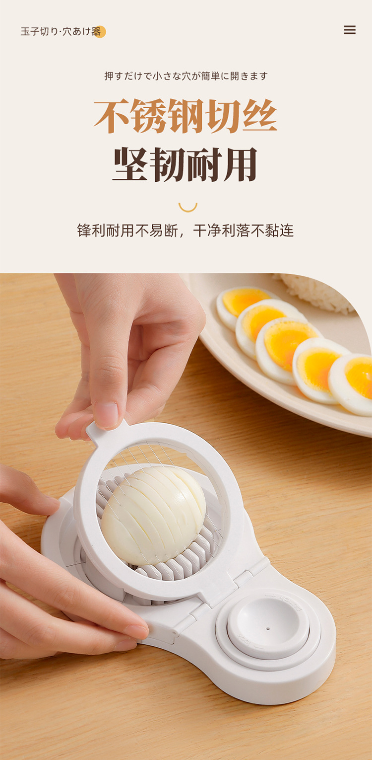 펀치 계란 커터 투인원 판타스크 계란 슬라이서 6 코너 계란 절단 홈 주방 일본 국경 도매스토어 가기
