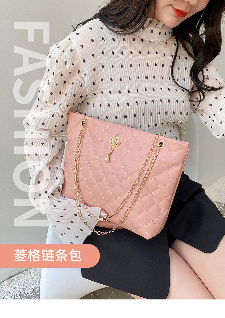 새로운 크라운 교수형 체인 다이아몬드 격자 무늬 버킷 가방 캐주얼 대외 무역 가방 여성 쇼핑백