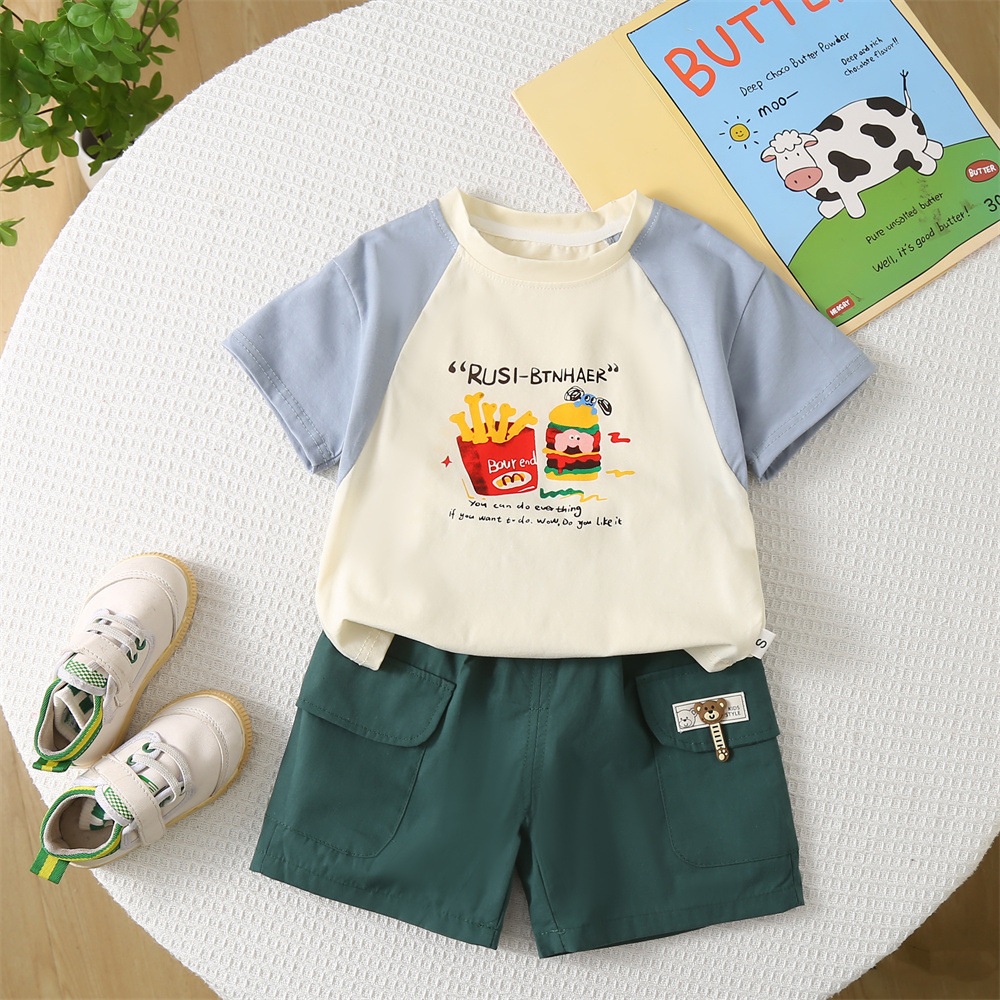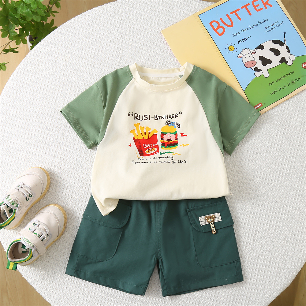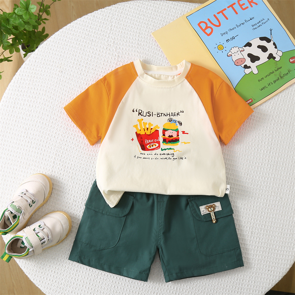 2025 년 여름 어린이 반팔 어린이 세트 컬러 매칭 2 종 소년 아동복 소녀상 여름 옷스토어 가기