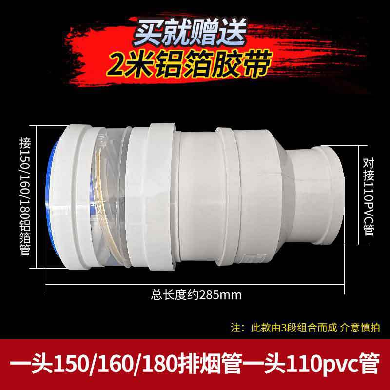 • 한쪽 끝은 150/160/180 알루미늄 호일 튜브이고 다른 쪽 끝은 110PVC 튜브입니다.