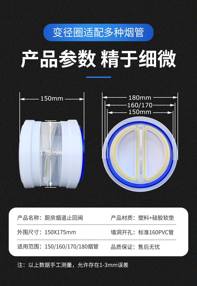 주방 범위 후드 체크 밸브 110 160PVC 파이프 연도 체크 밸브 연기 정지 밸브 가정용 범용 공기 배출구스토어 가기