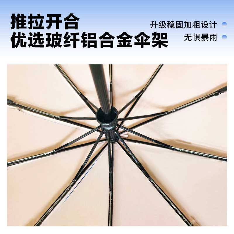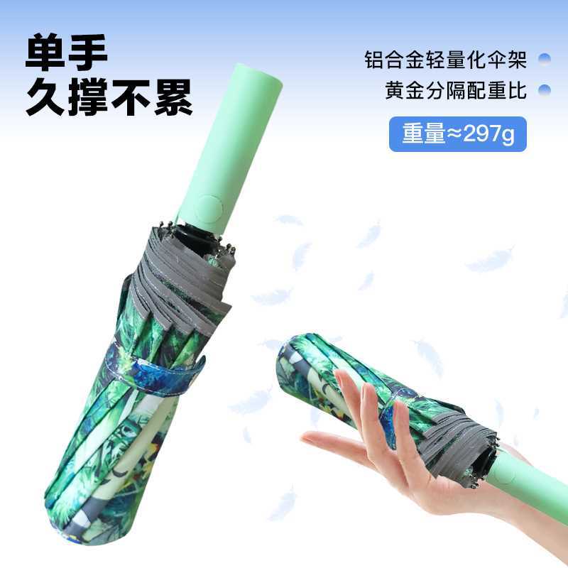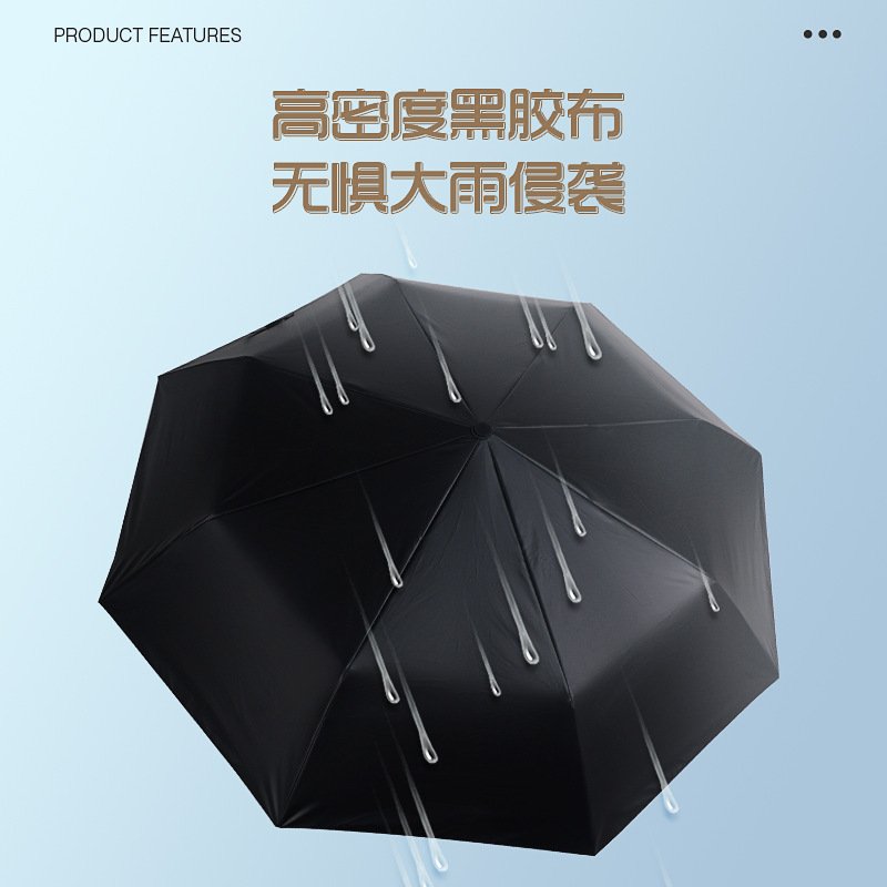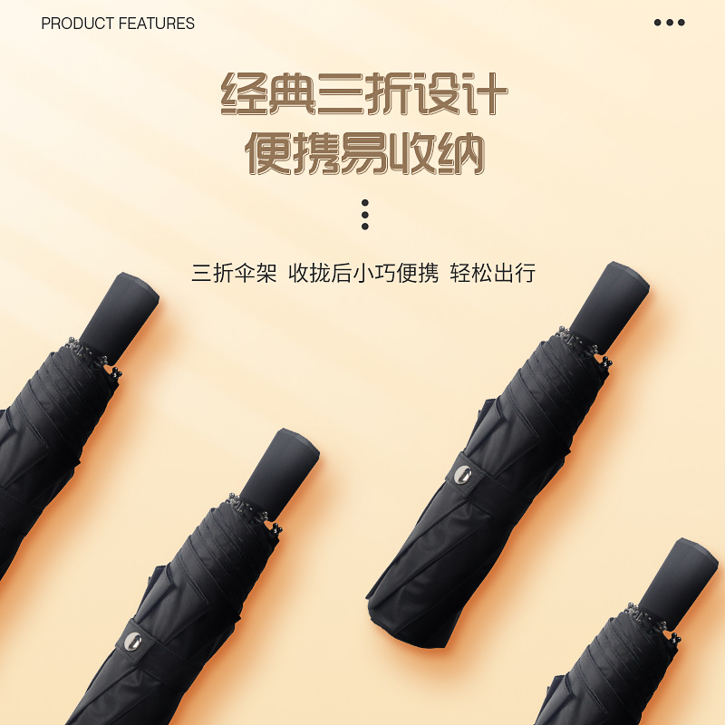 超级防风设计,无惧狂风骤雨,稳稳守护每一次出行;伞面采用 210T 高密度面料,不仅具备超强防晒能力,有效阻隔紫外线侵扰,更有卓越防雨性能,让你在风雨中始终保持干爽。