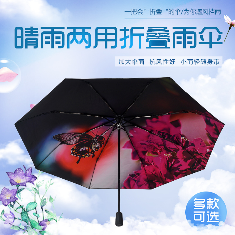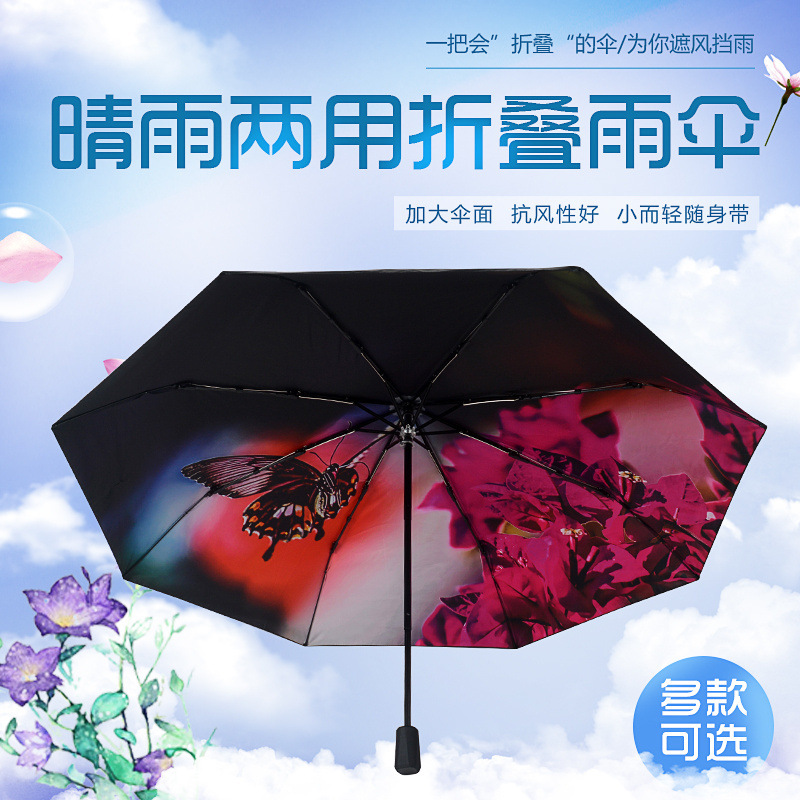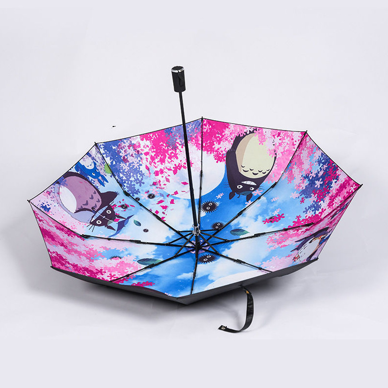 자동 두꺼운 어린이 여성의 태양 보호 UV 보호 이중 목적 접이식 검은 고무 우산 야외 태양 단순