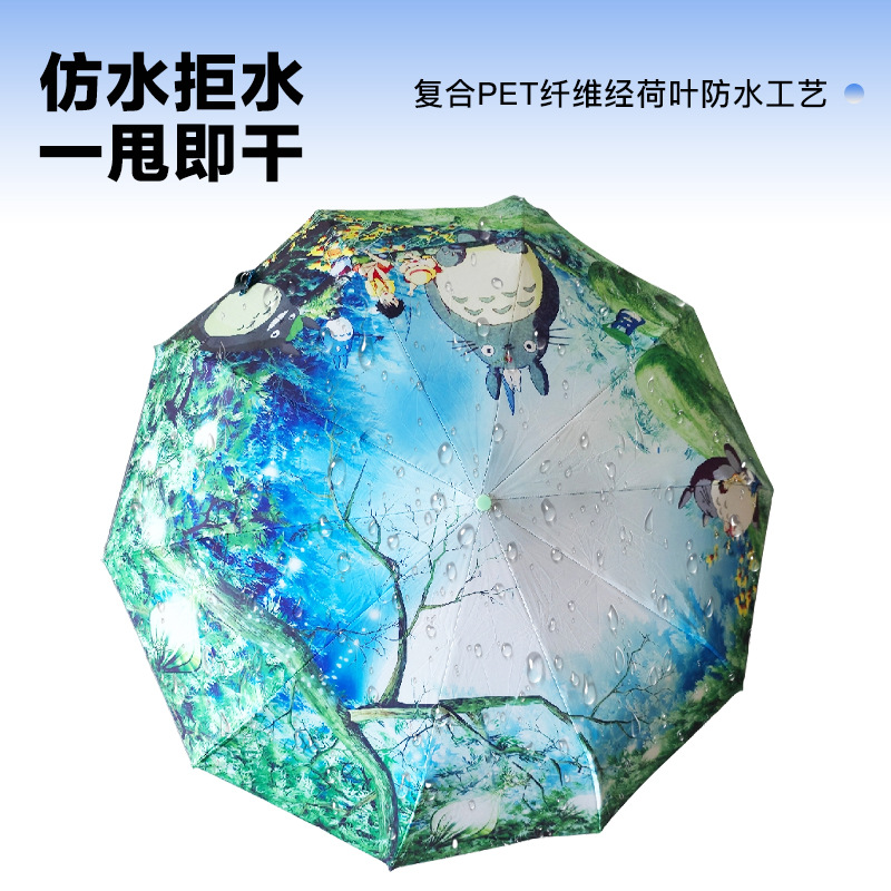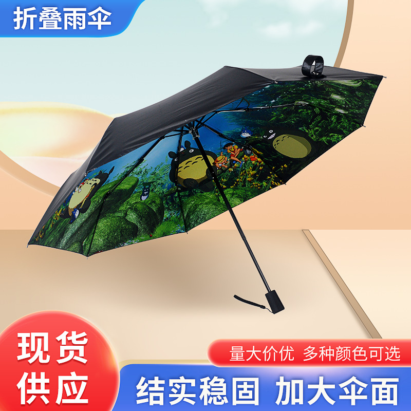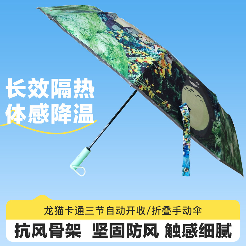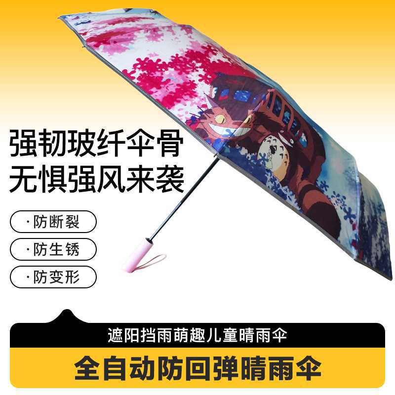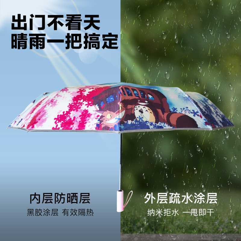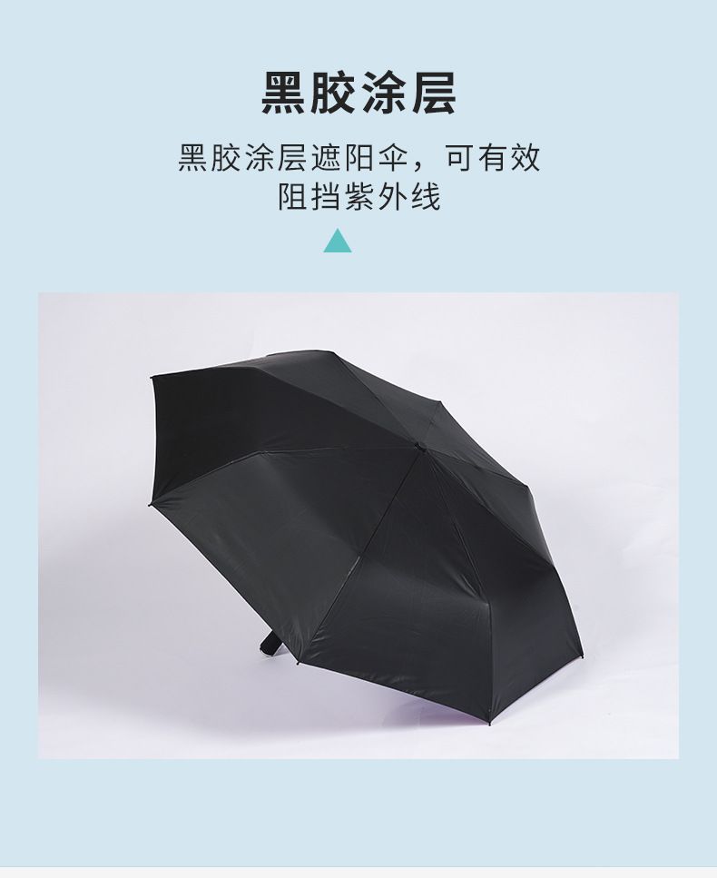 자동 두꺼운 어린이 여성의 태양 보호 UV 보호 이중 목적 접이식 검은 고무 우산 야외 태양 단순스토어 가기