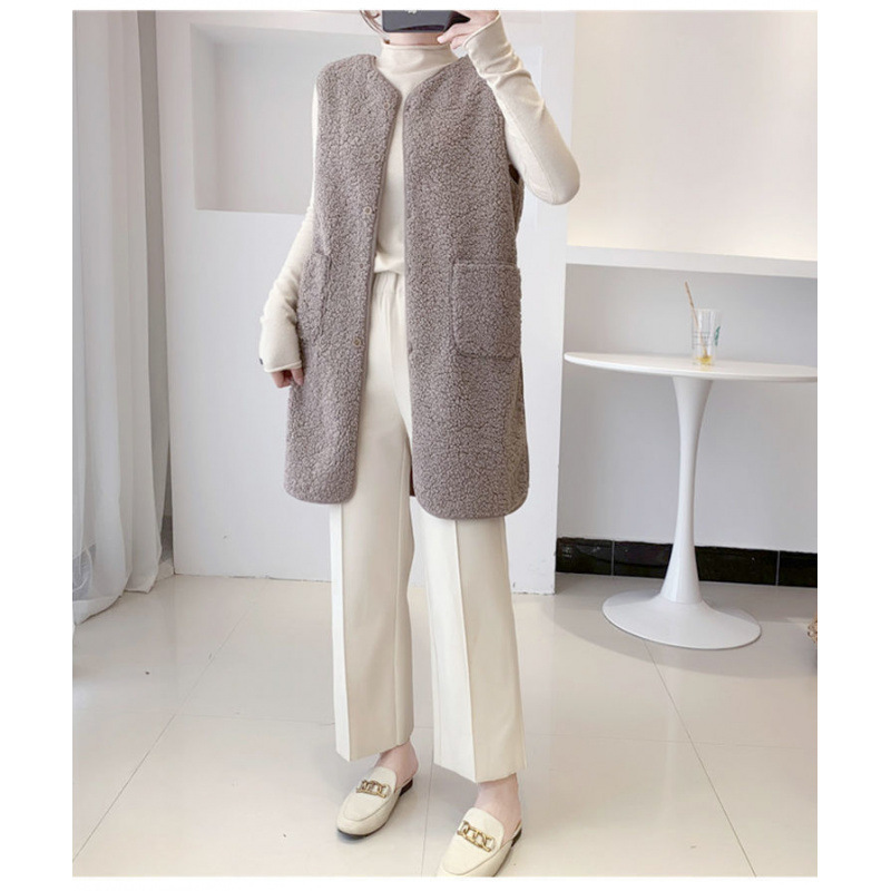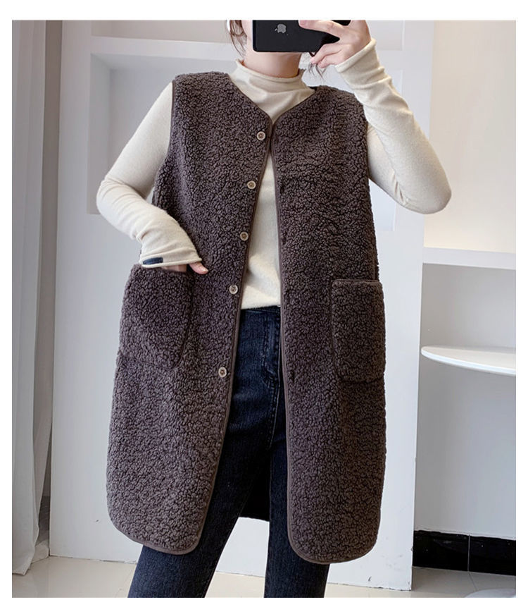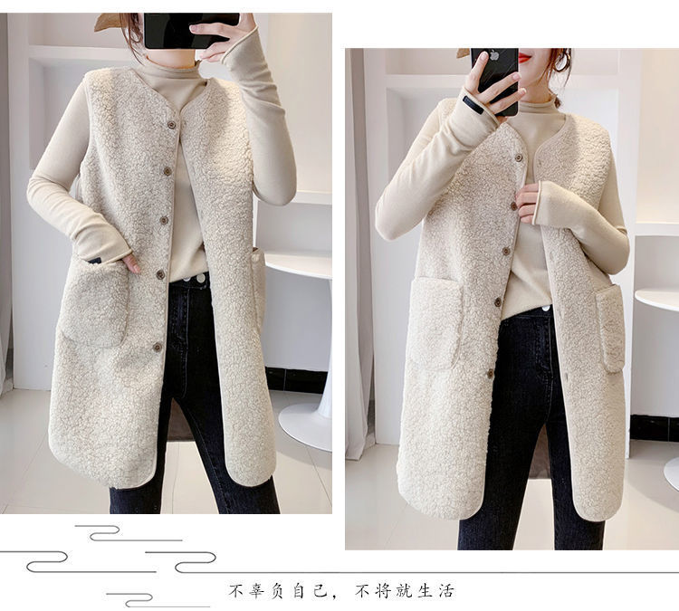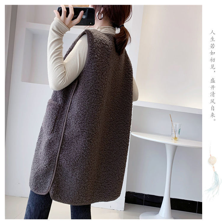 양털 느낌의 중간 길이 조끼 여성용 가을 겨울 패션 신상 스타일리시하고 다재다능한 여성용 민소매 조끼스토어 가기