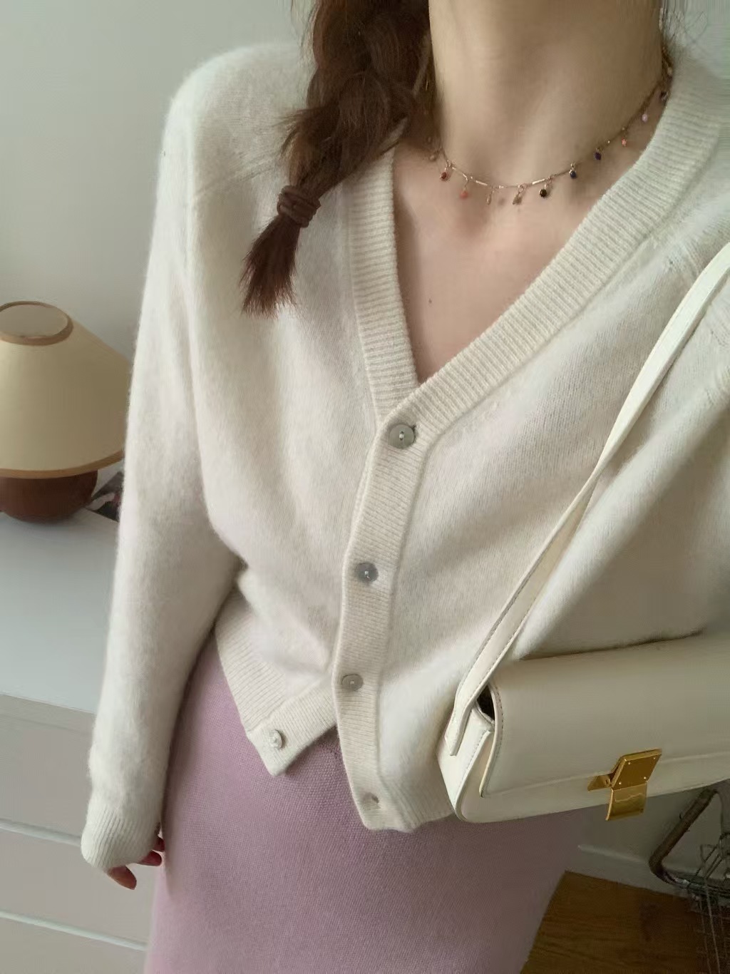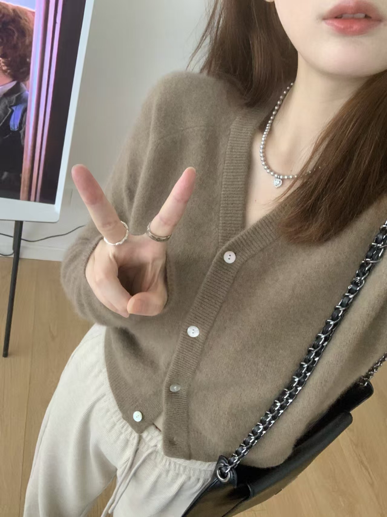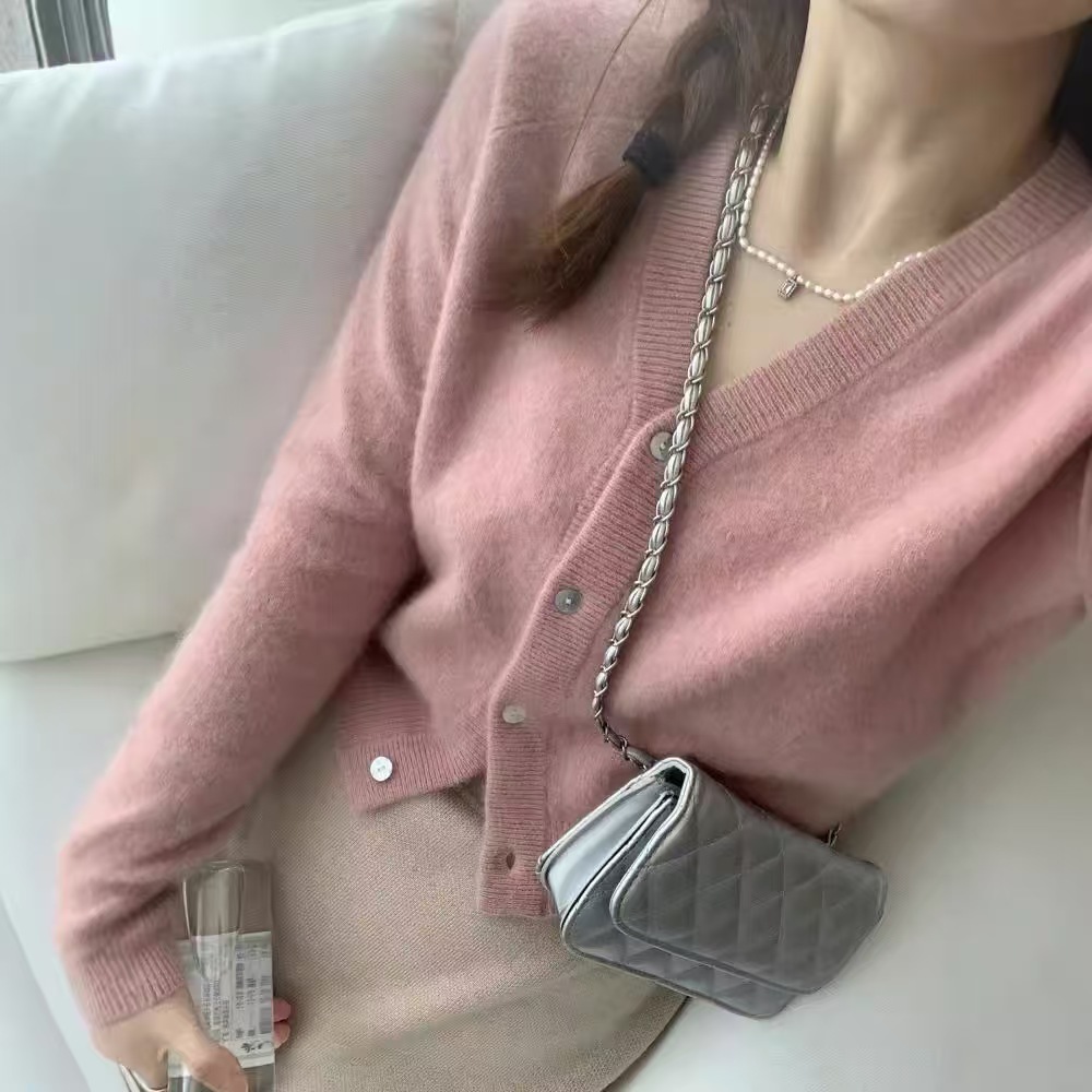 가을과 겨울 새로운 V 넥 울 카디건 여성용 짧은 루즈 스웨터 코트 게으른 스타일 솔리드 컬러 니트베이스 셔츠 트렌디스토어 가기