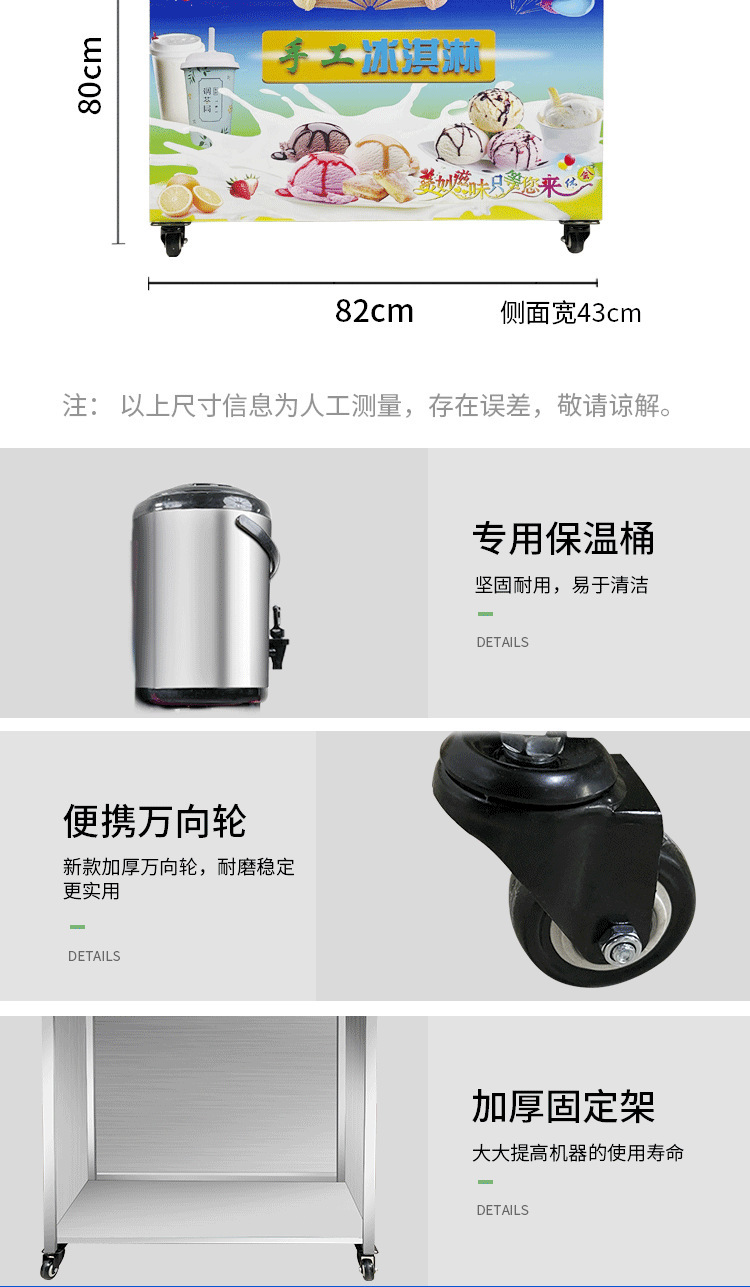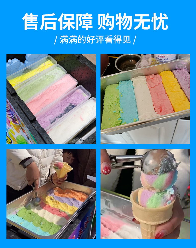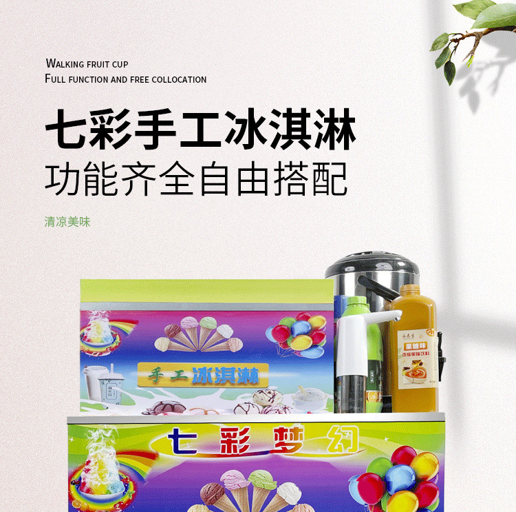 인터넷 레드 다채로운 아이스크림 기계 레인보우 순수 수제 스톨 절연 상자 달콤한 콘 아이스크림 상업용 트롤리스토어 가기