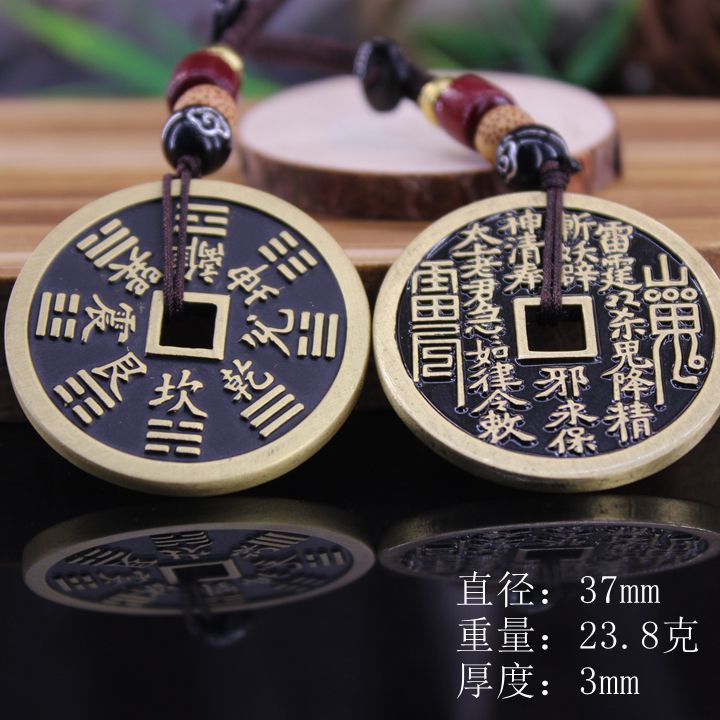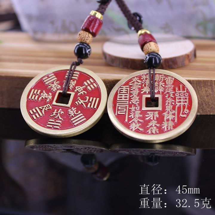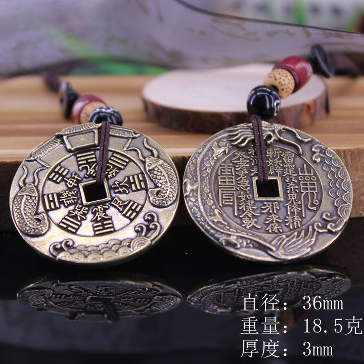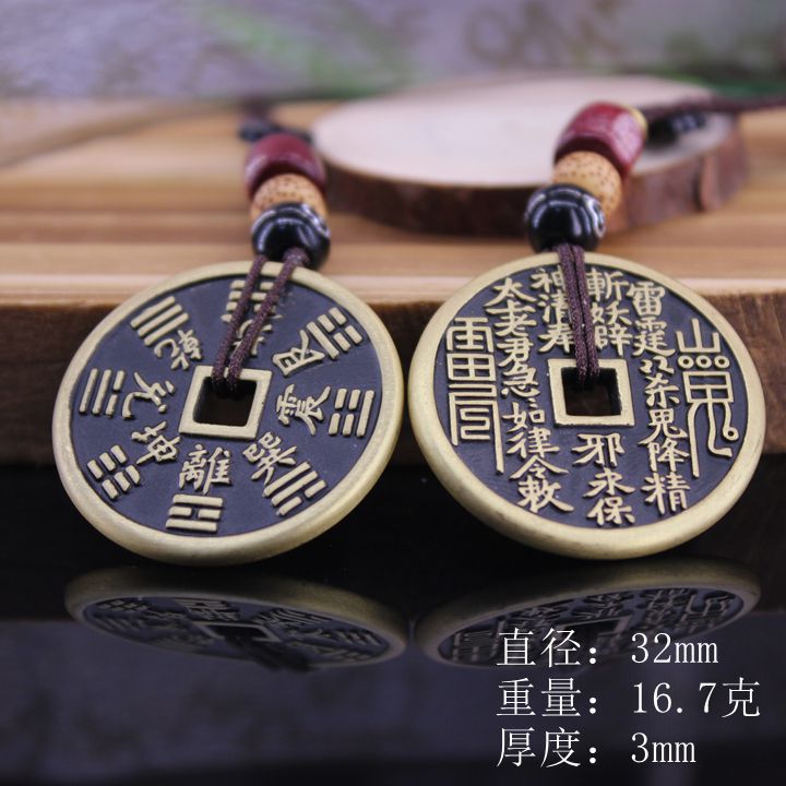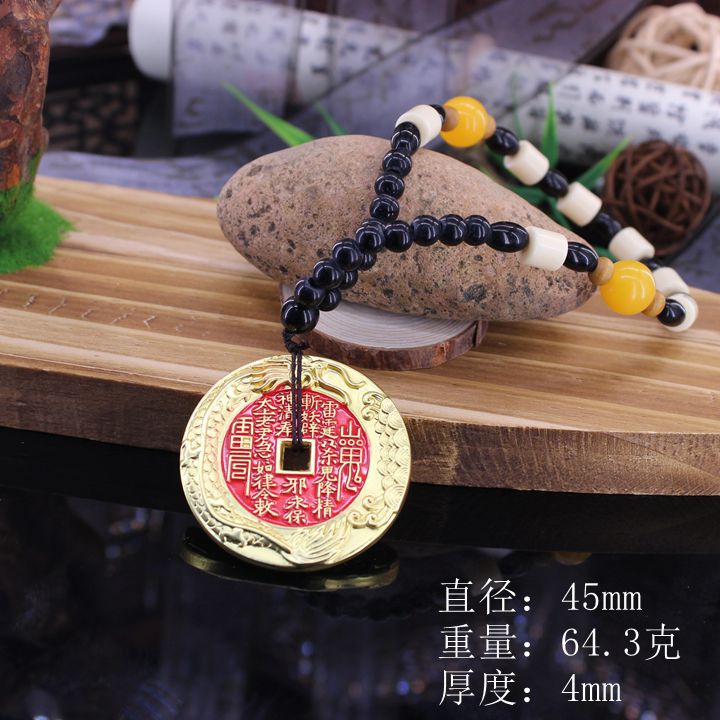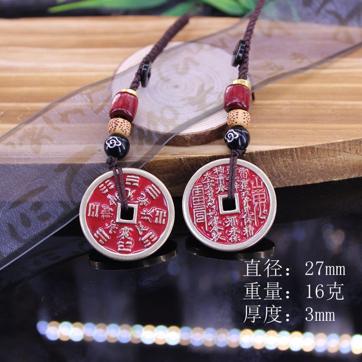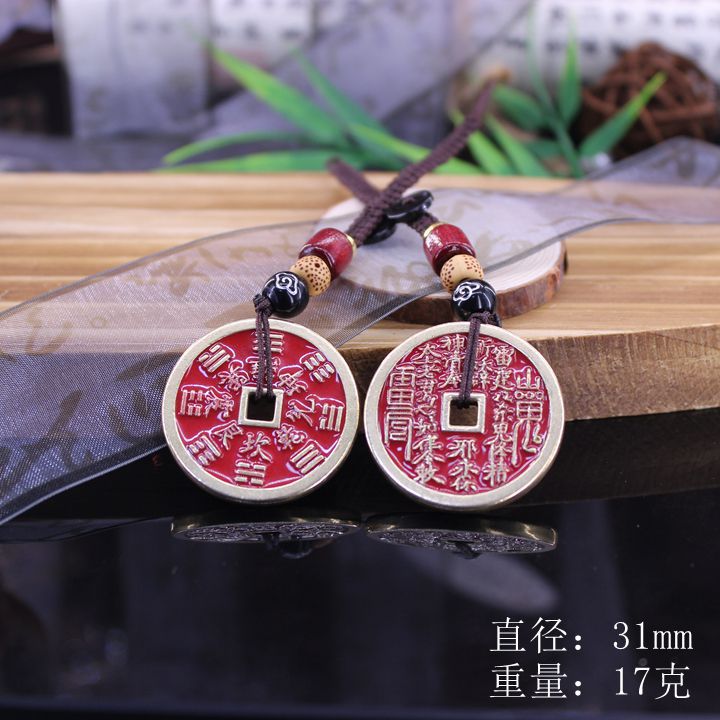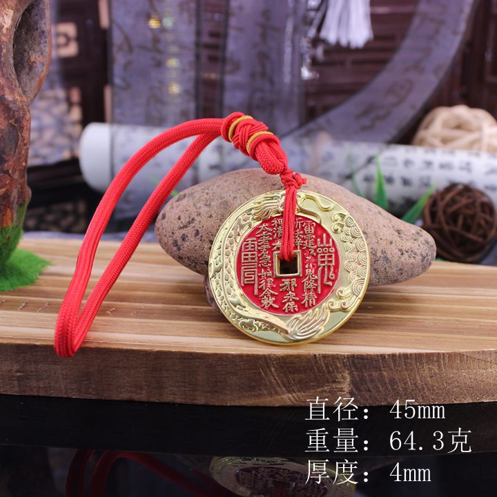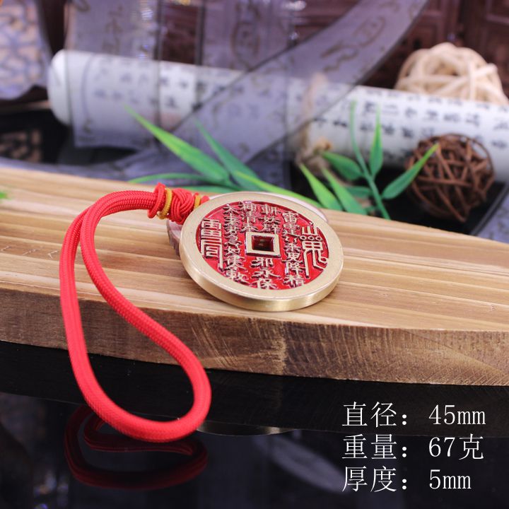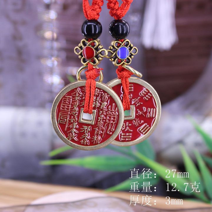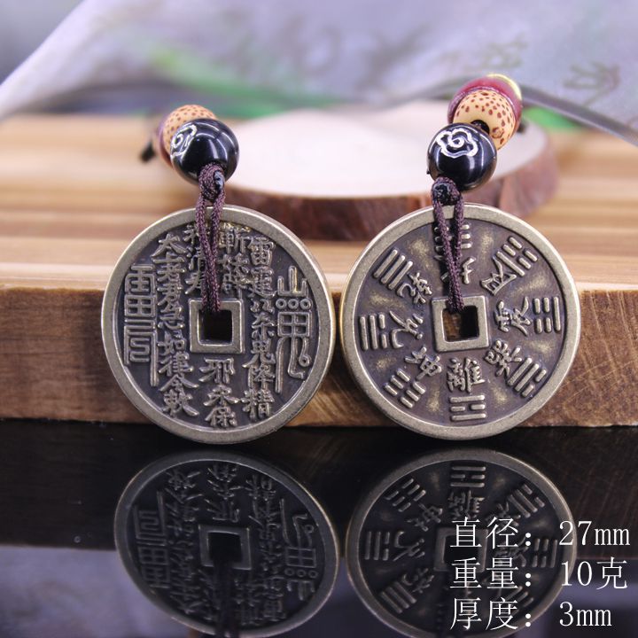 황동 중국식 주사산 유령화 동전 열쇠고리 동전 펜던트 장식품 도교 장신구 골동품스토어 가기