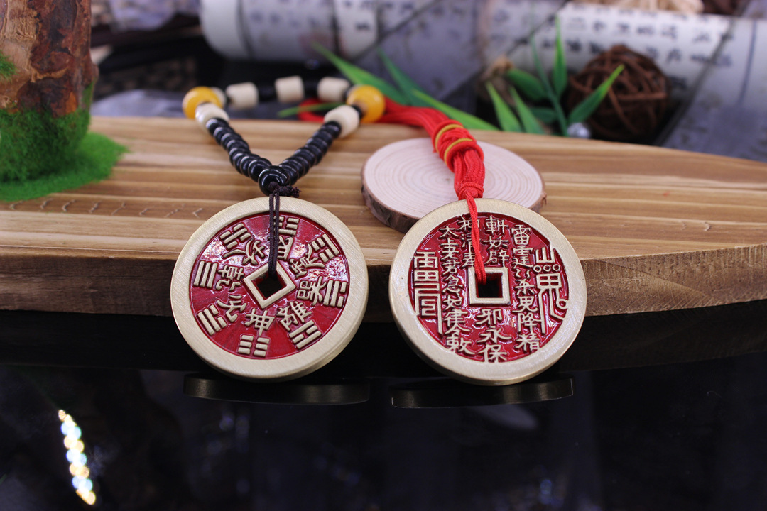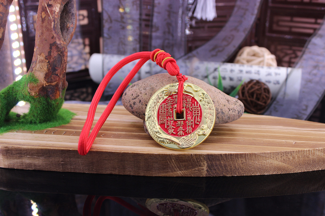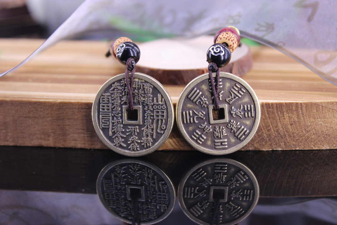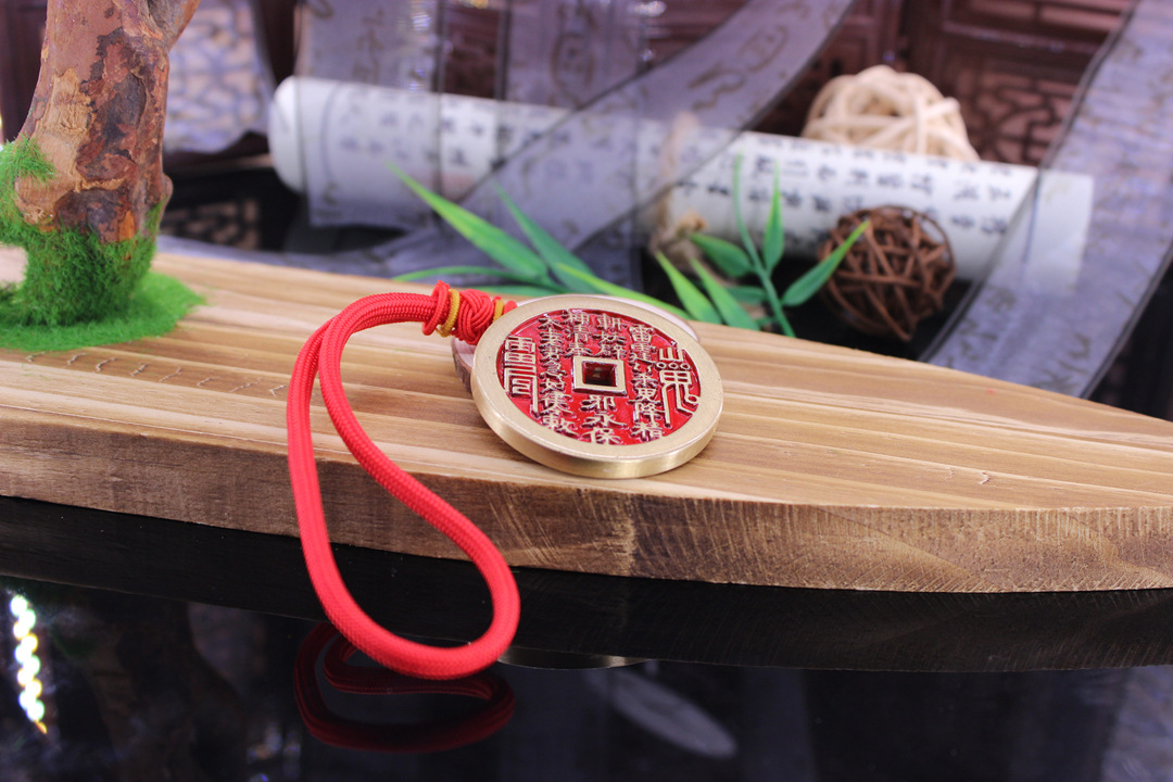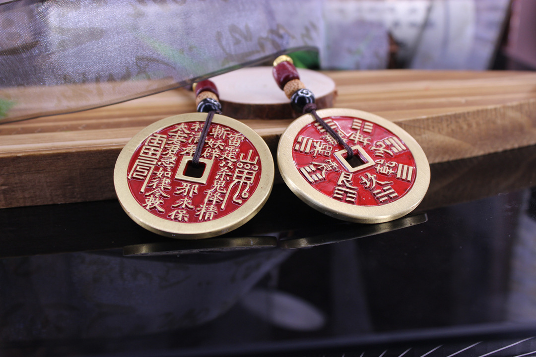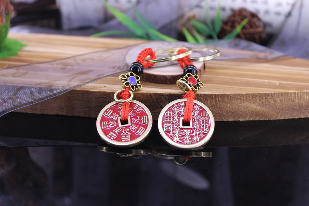 중국 Cinnabar Mountain Ghost 지출 황동 키 체인 코인 순수 구리 펜던트 펜던트 도교 보석 골동품스토어 가기