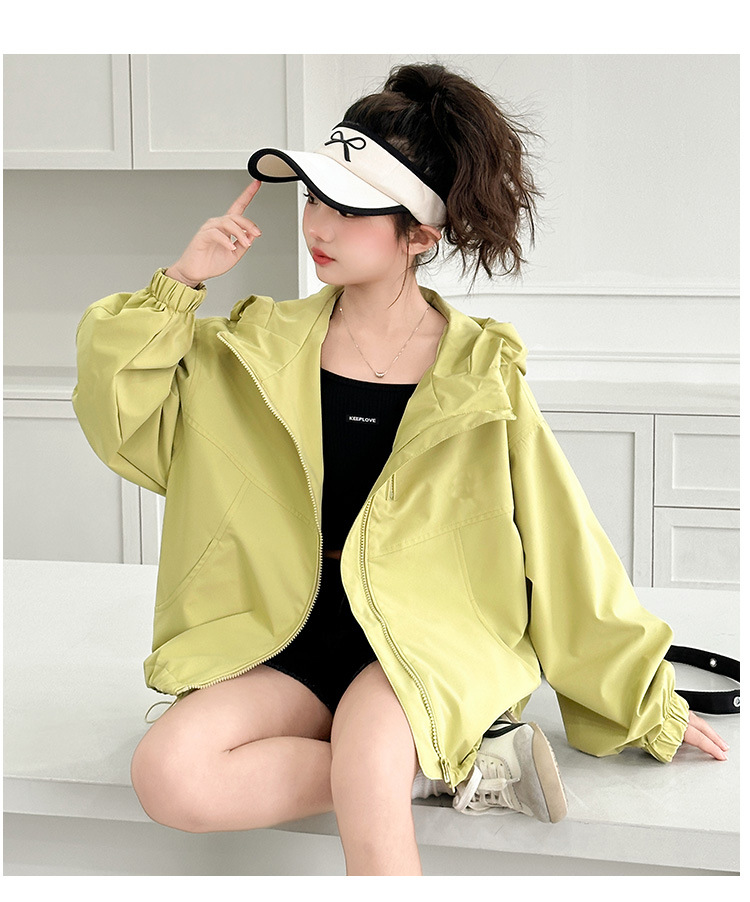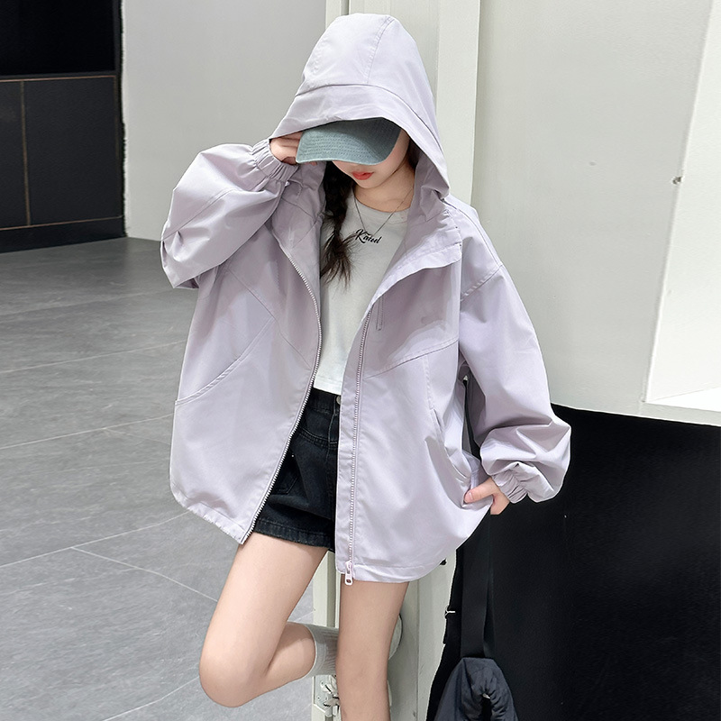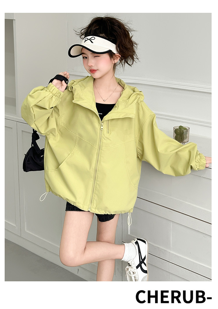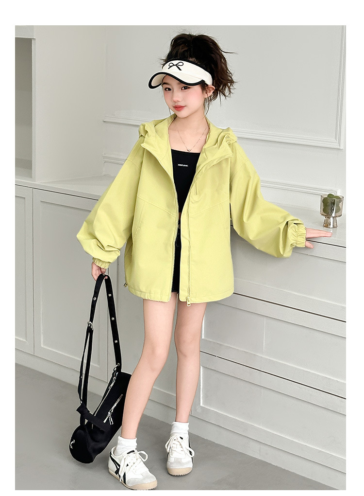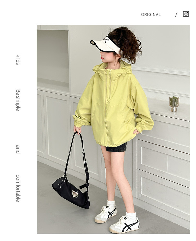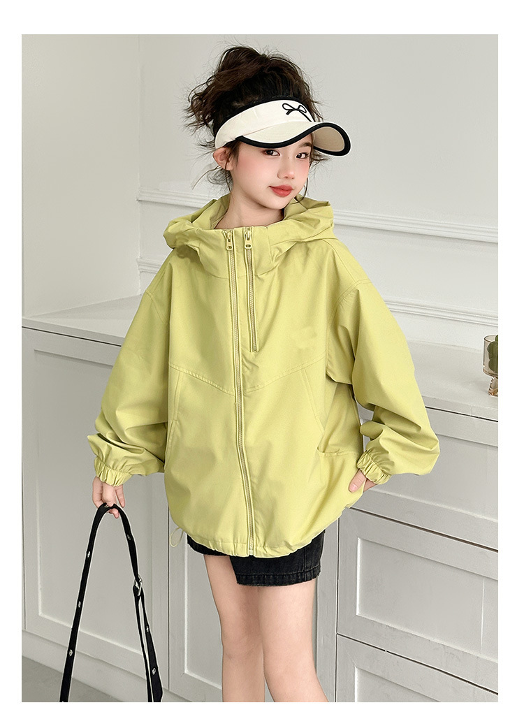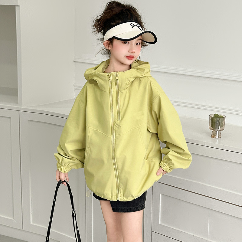소녀의 봄 옷 재킷 2025 새로운 스타일 소녀의 빅 보이 스트리트 후드 재킷 탑 짧은 카디건