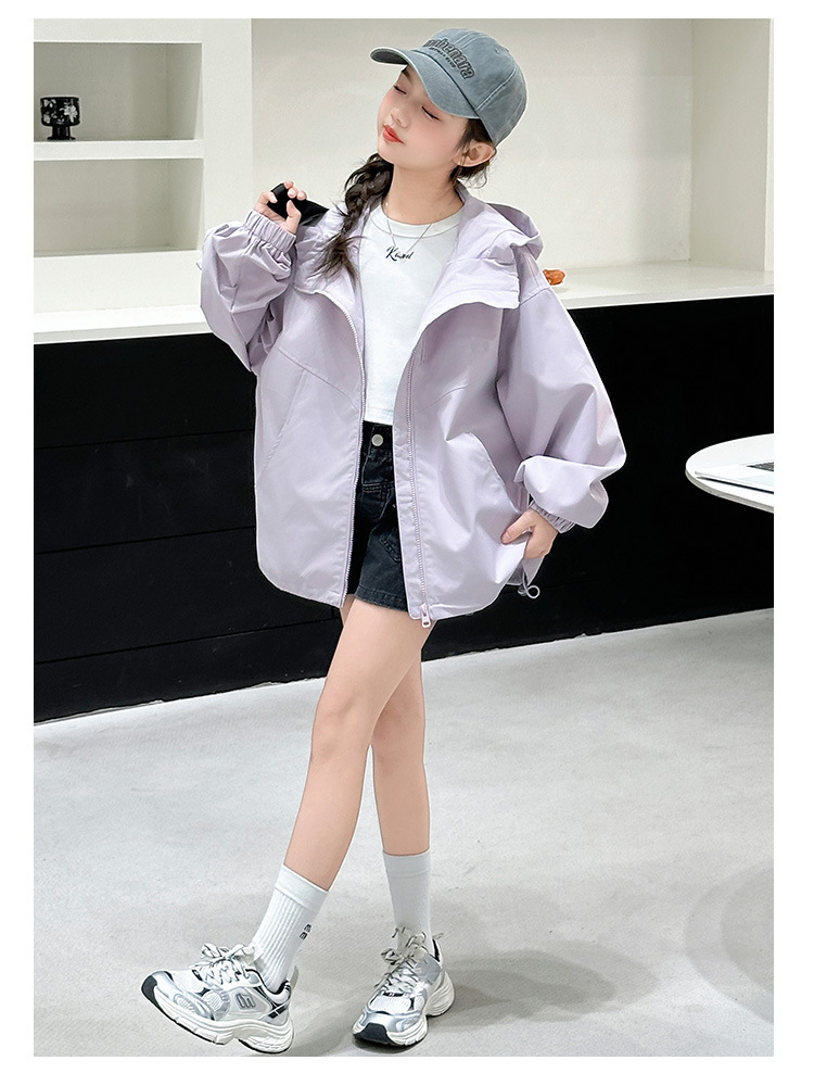 소녀의 봄 옷 재킷 2025 새로운 스타일 소녀의 빅 보이 스트리트 후드 재킷 탑 짧은 카디건스토어 가기
