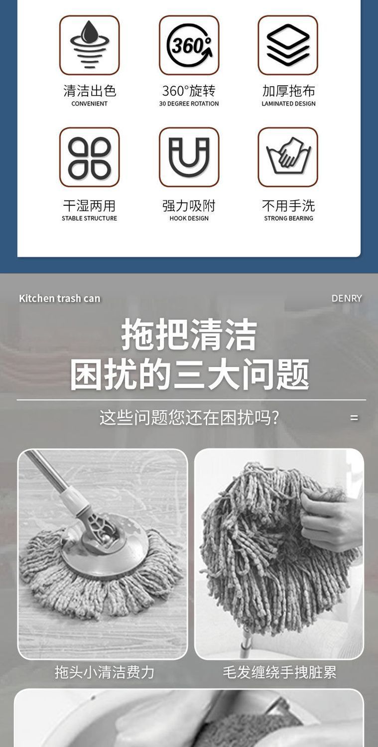 게으른 사람들을위한 플랫 걸레 건조 및 젖은 특별한 대형 걸레를위한 가정용 핸드 프리 걸레 욕실 및 침실