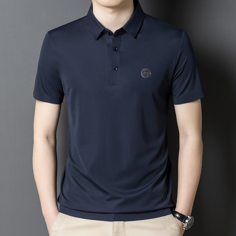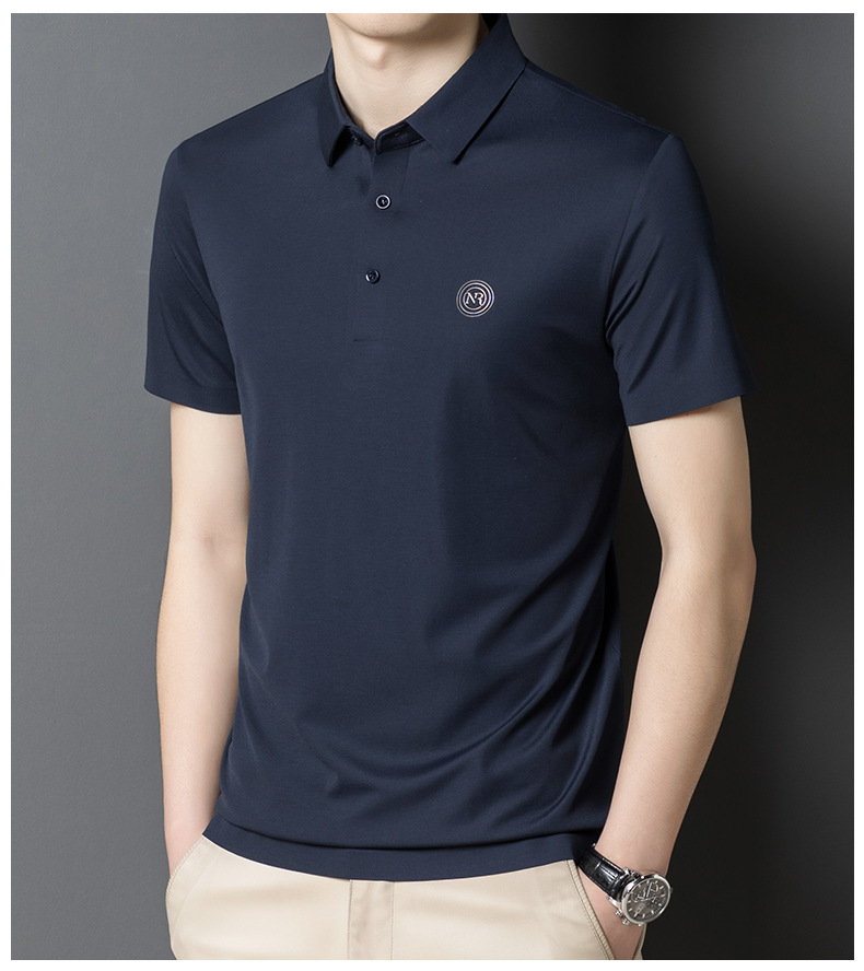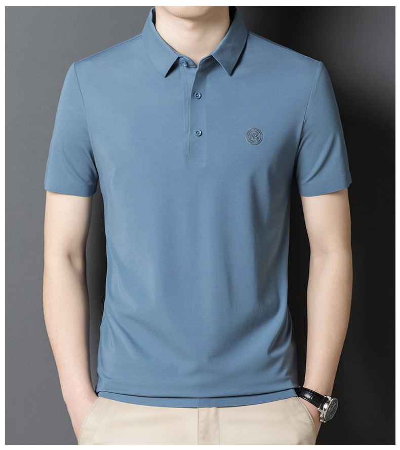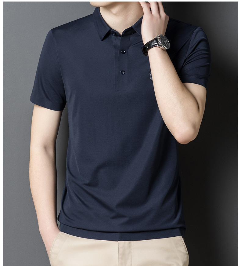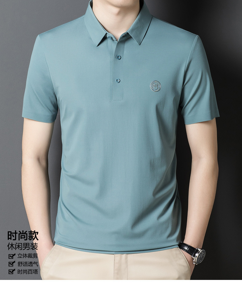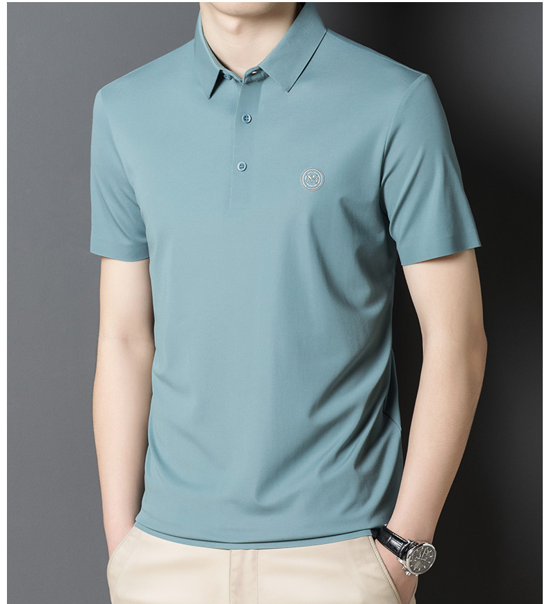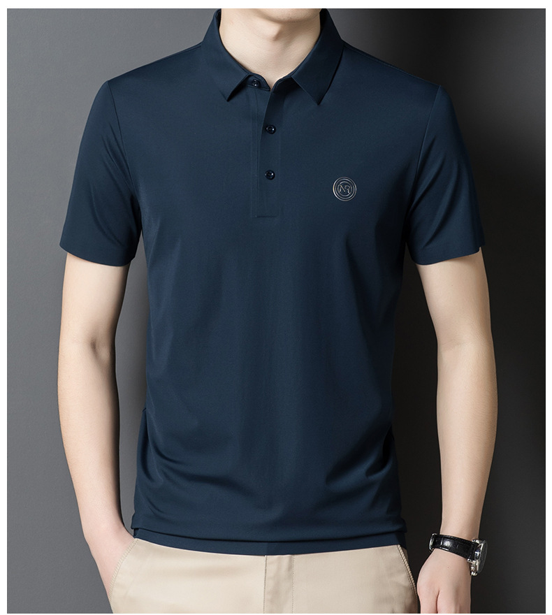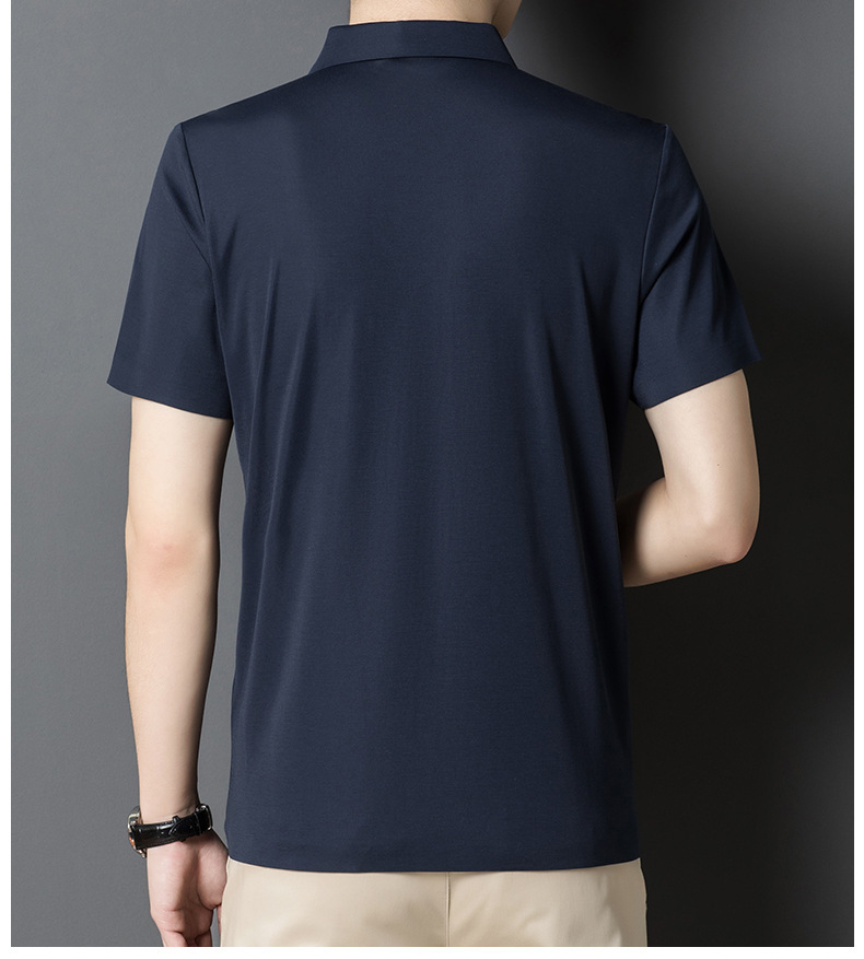 원활한 아이스 실크 랩 반팔 티셔츠 남성용 캐주얼 폴로 셔츠 중년 아빠용 여름 반소매 남성용 티셔츠