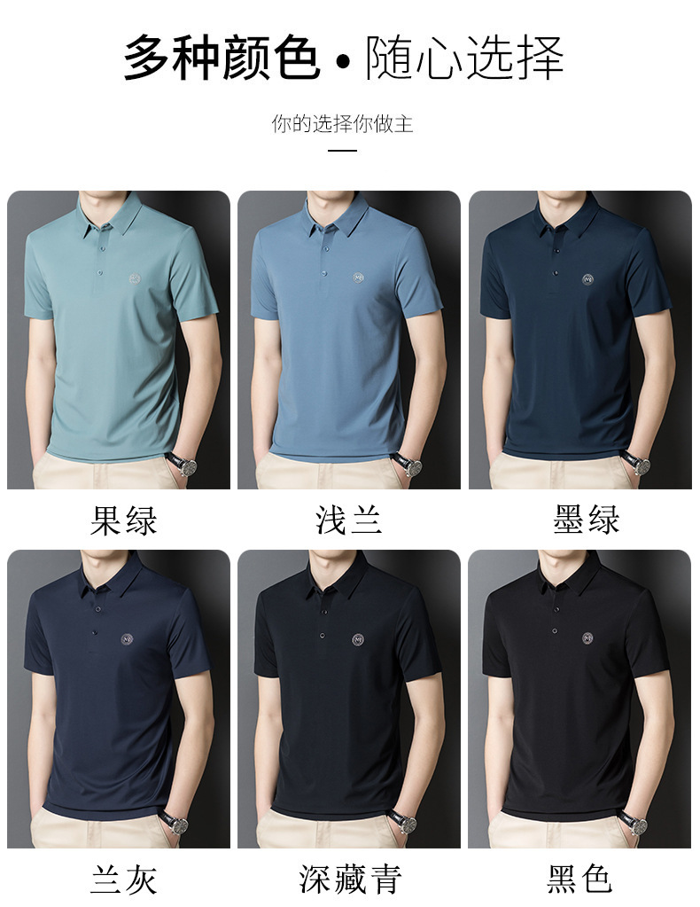 无缝冰丝翻领短袖t恤男士休闲polo衫中年爸爸夏装半袖商务体恤男