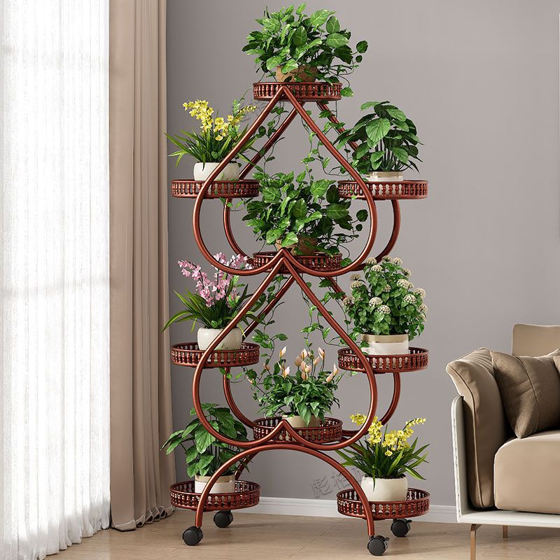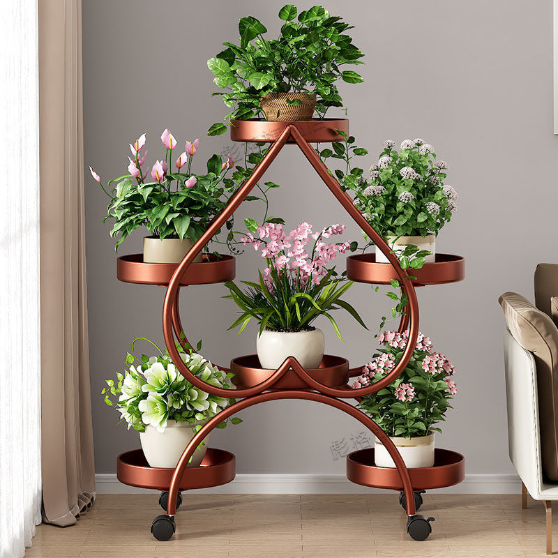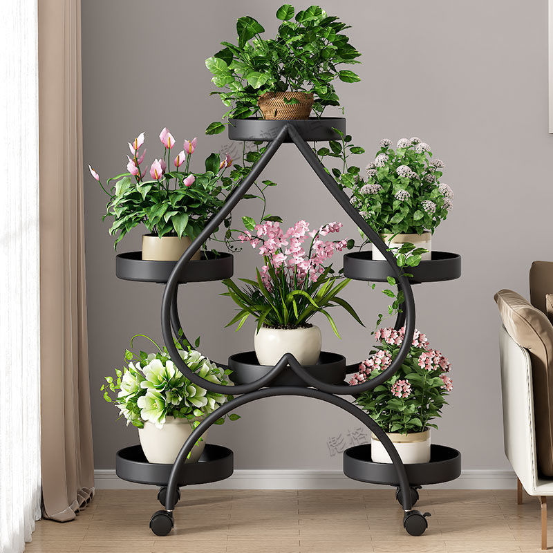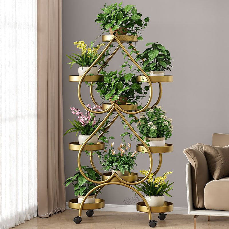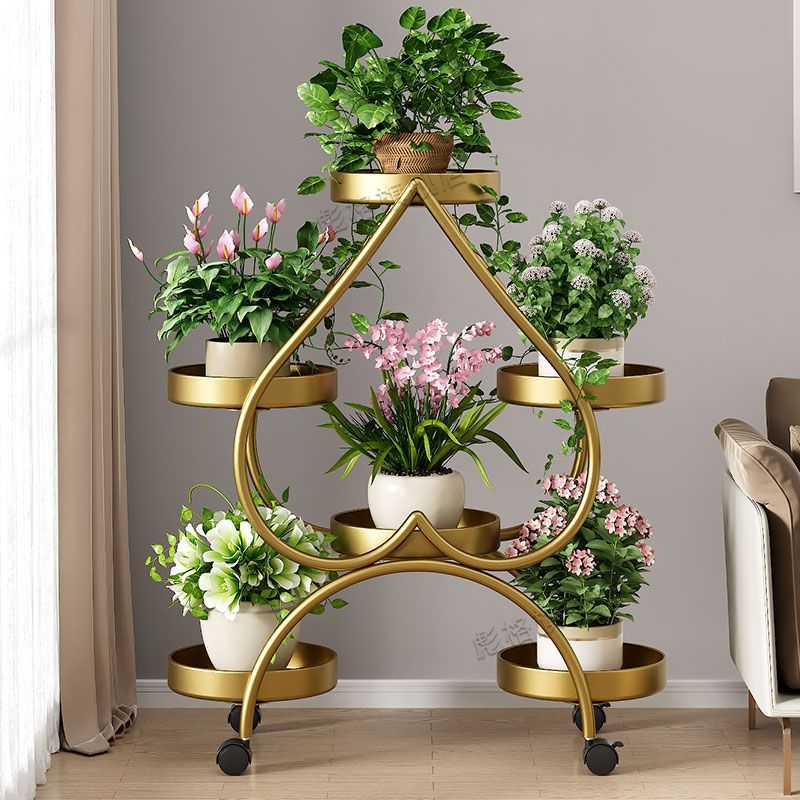 하트 모양의 꽃 랙 거실 바닥 서 철 멀티 레이어 휠 실내 녹색 꽃 냄비 랙 발코니 이동식 저장 랙스토어 가기