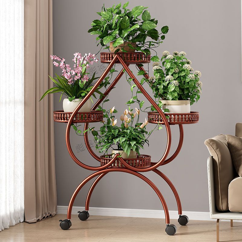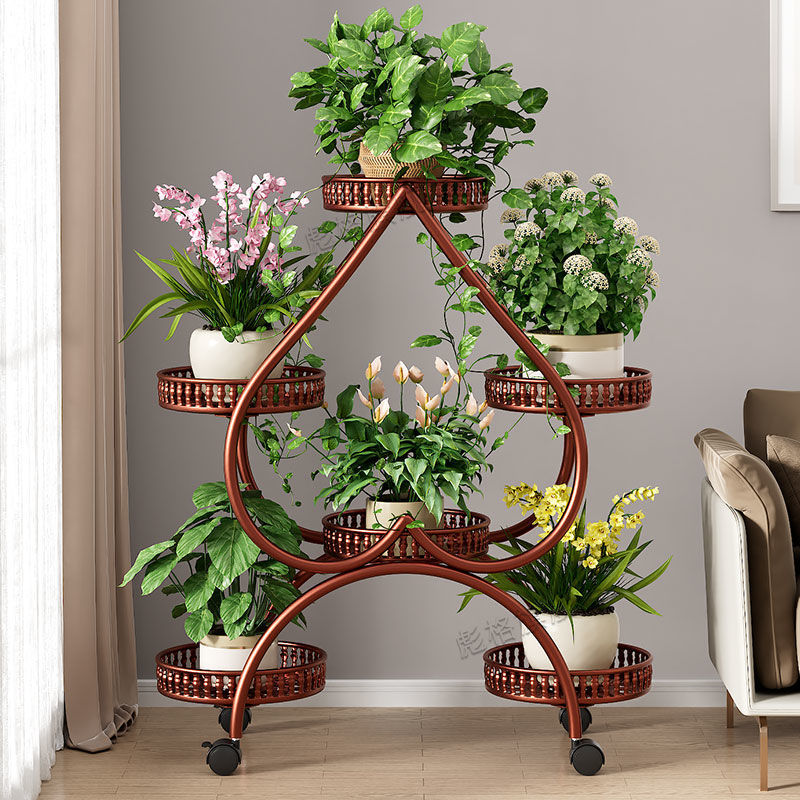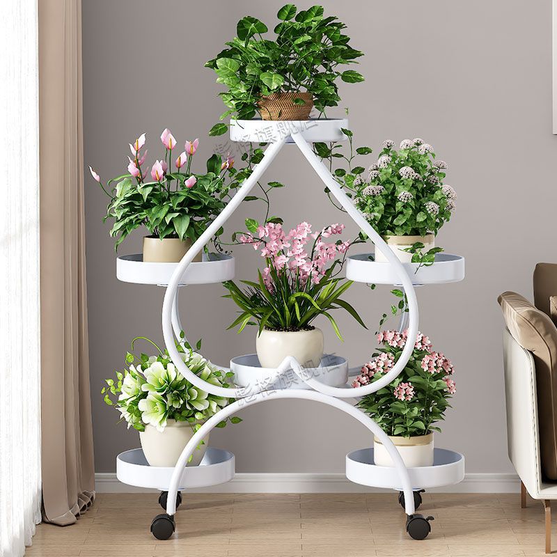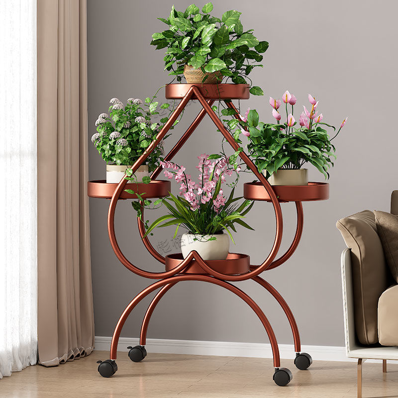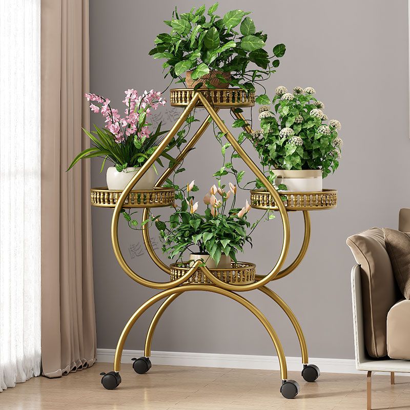 하트 모양의 꽃 랙 거실 바닥 서 철 멀티 레이어 휠 실내 녹색 꽃 냄비 랙 발코니 이동식 저장 랙스토어 가기